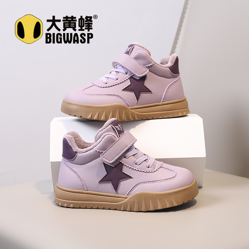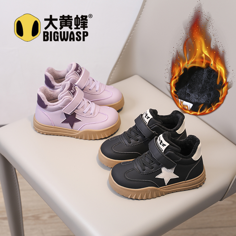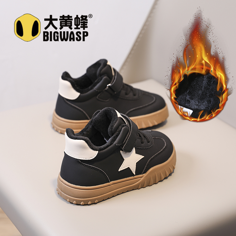 大黄蜂儿童冬季新款防滑保暖棉鞋男童二棉运动鞋女童软底加绒板鞋
