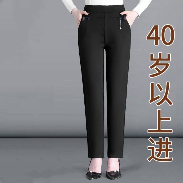 中老年女裤秋冬妈妈裤子高腰弹力宽松大码直筒休闲裤子女加绒加厚