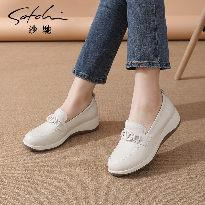 沙驰女鞋软底厚底摇摇鞋乐福鞋