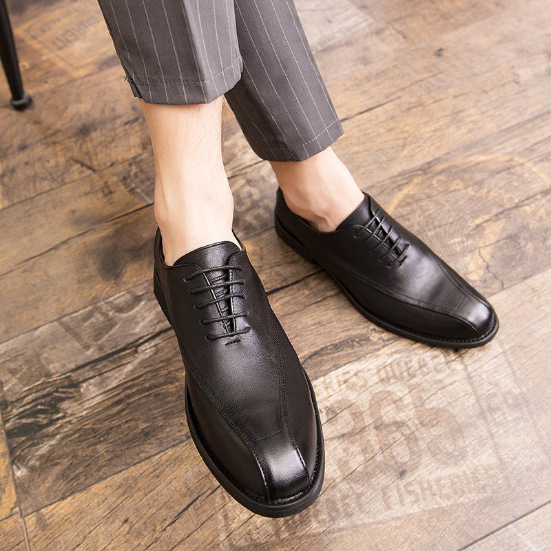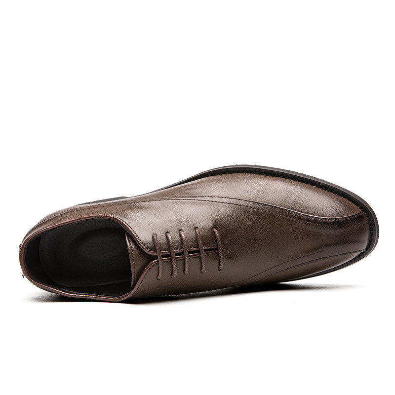 真皮男鞋尖头休闲潮流布洛克透气牛皮手抓纹发型师内增高英伦皮鞋