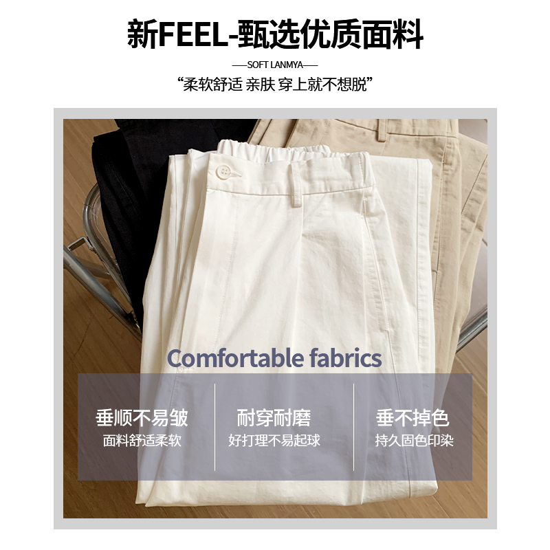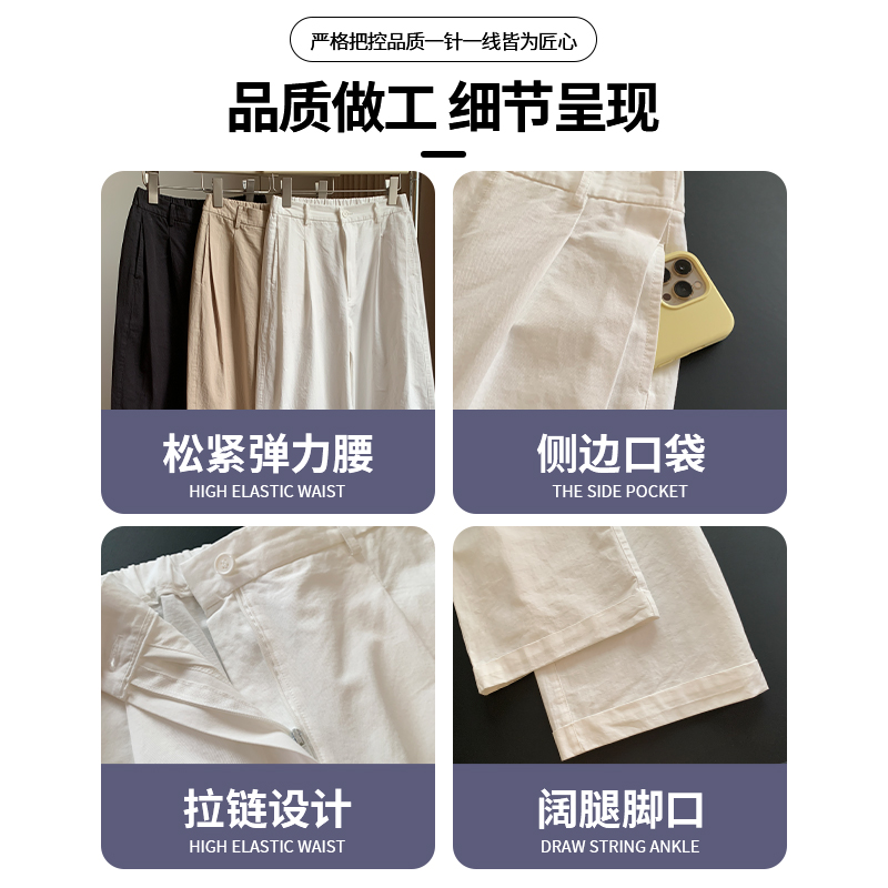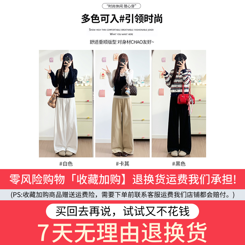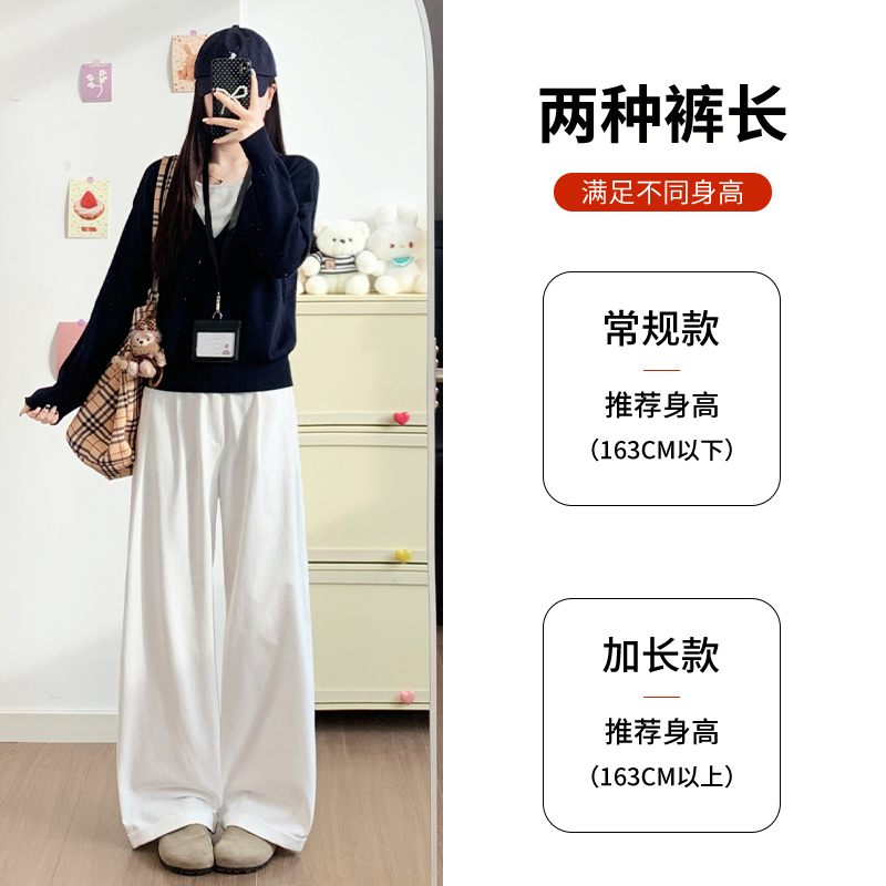 白色直筒阔腿裤女春秋季2025新款小个子宽松高腰垂感棉麻休闲裤子