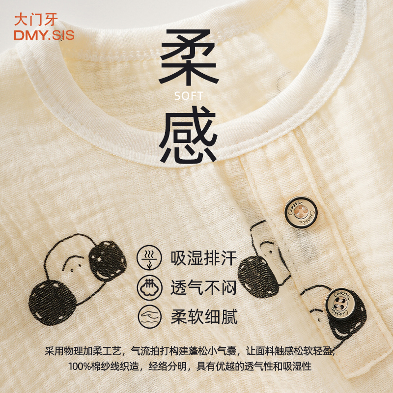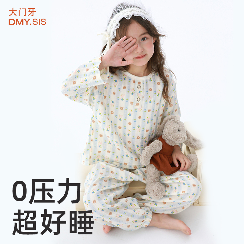 儿童睡衣纯棉家居服套装a类全棉纱布棉绸男女童春夏秋家居空调服