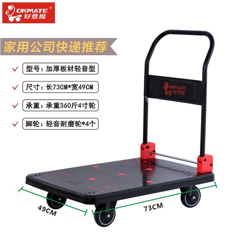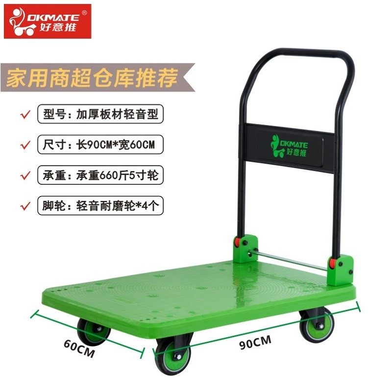 好意推塑料平板车手推车折叠搬运车四轮加厚小拖车家用静音好易推