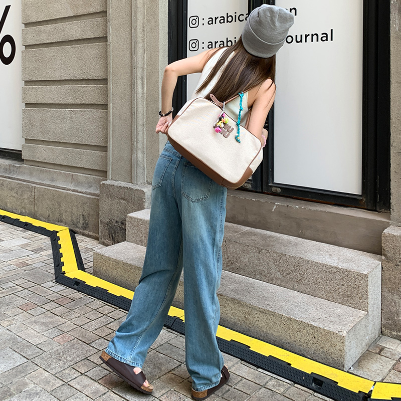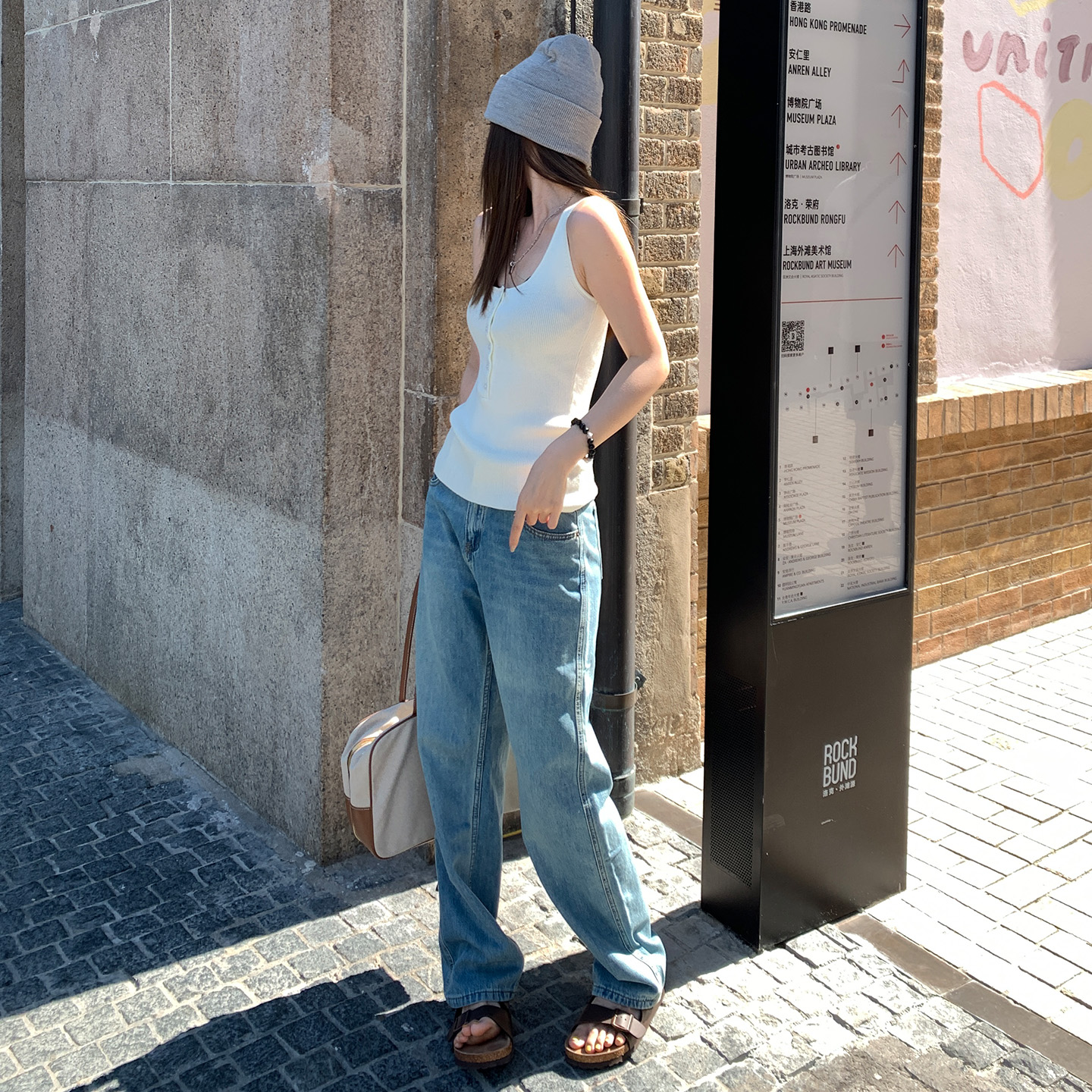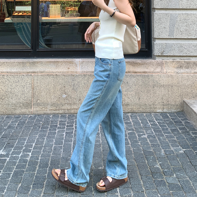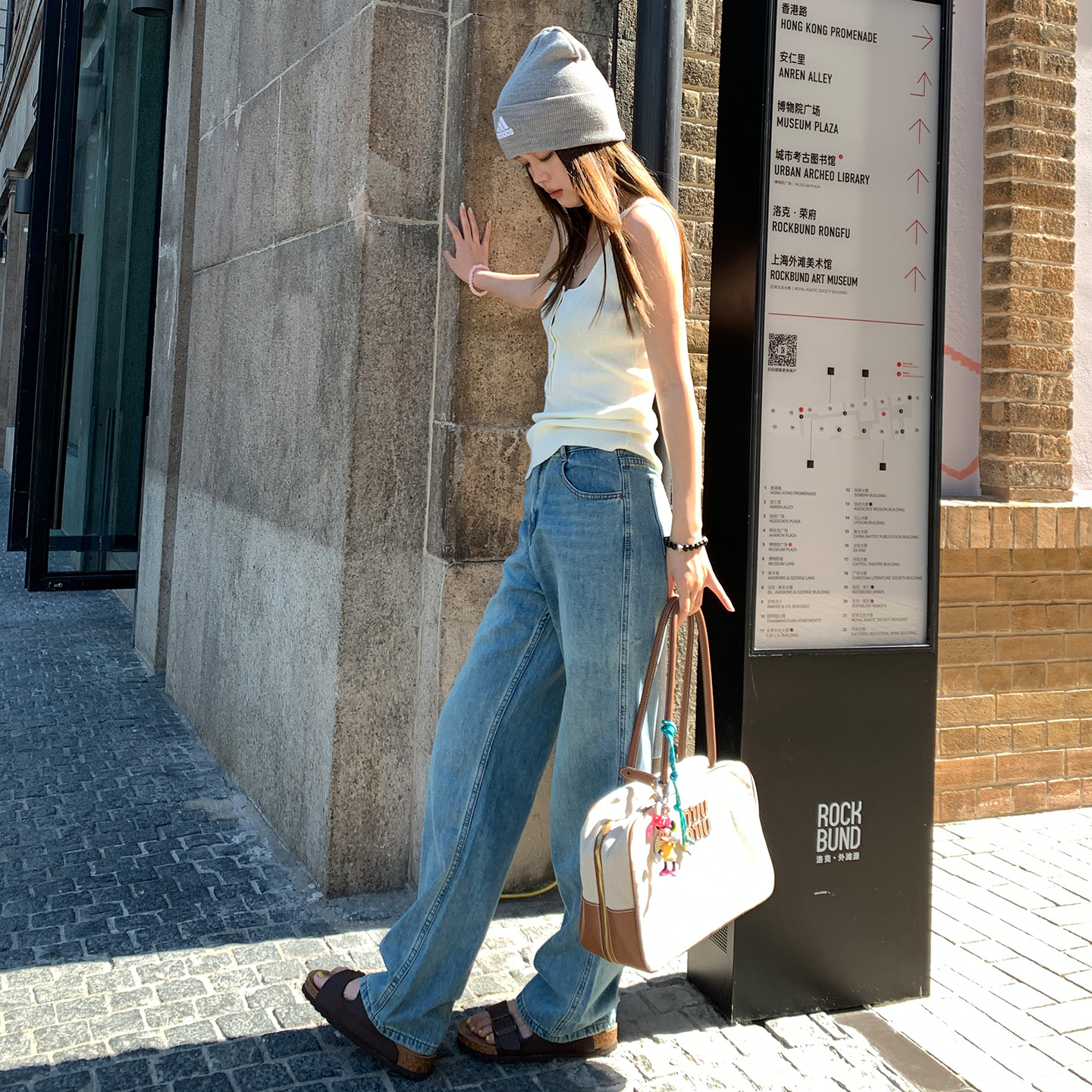 浅蓝高腰直筒牛仔裤宽松显瘦百搭