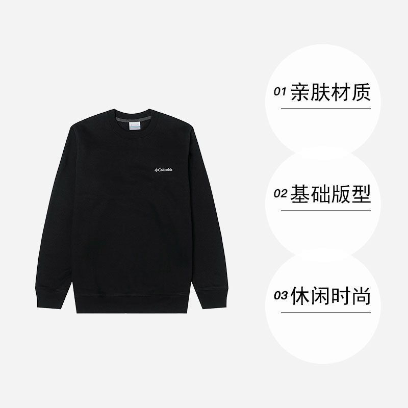 【自营】哥伦比亚卫衣男装黑色简约上衣户外休闲衣长袖套头衫