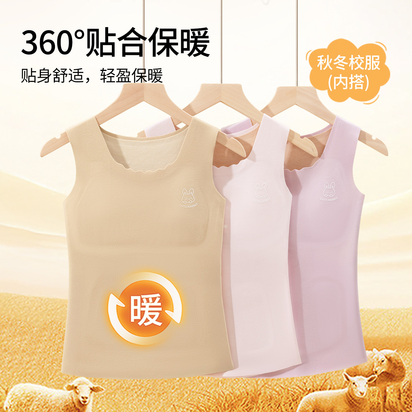 儿童内衣发育期小学生女童背心内穿冬德绒保暖加绒加厚羊绒蚕丝