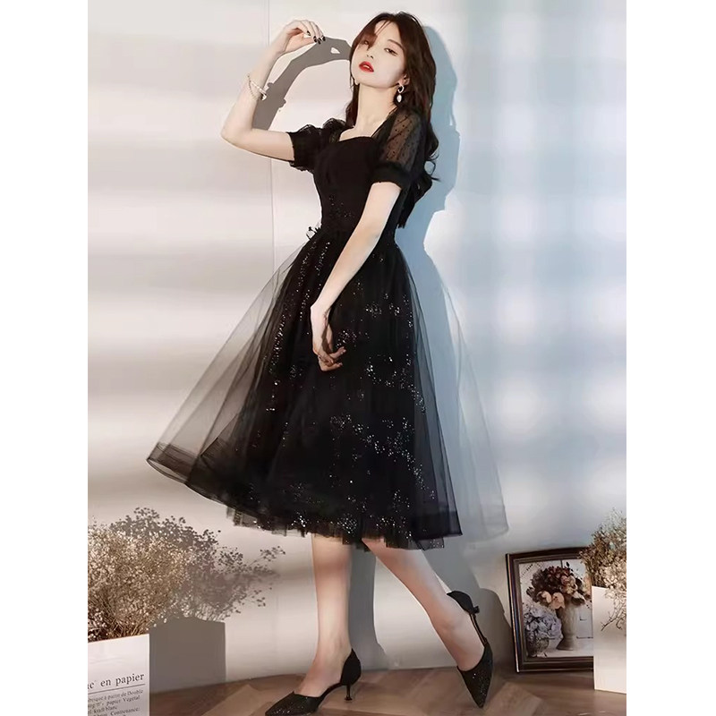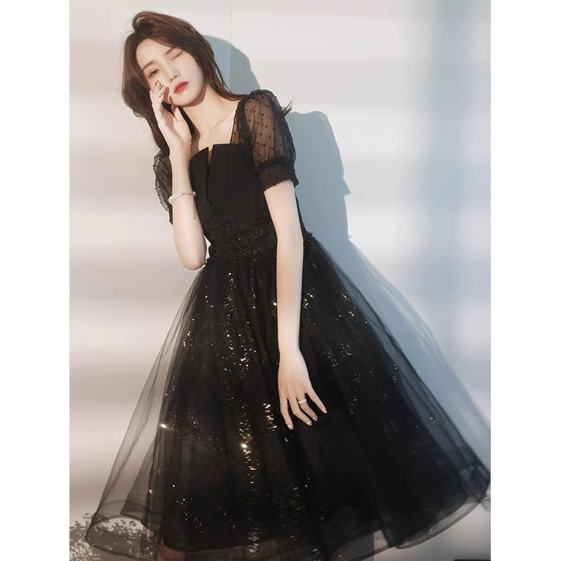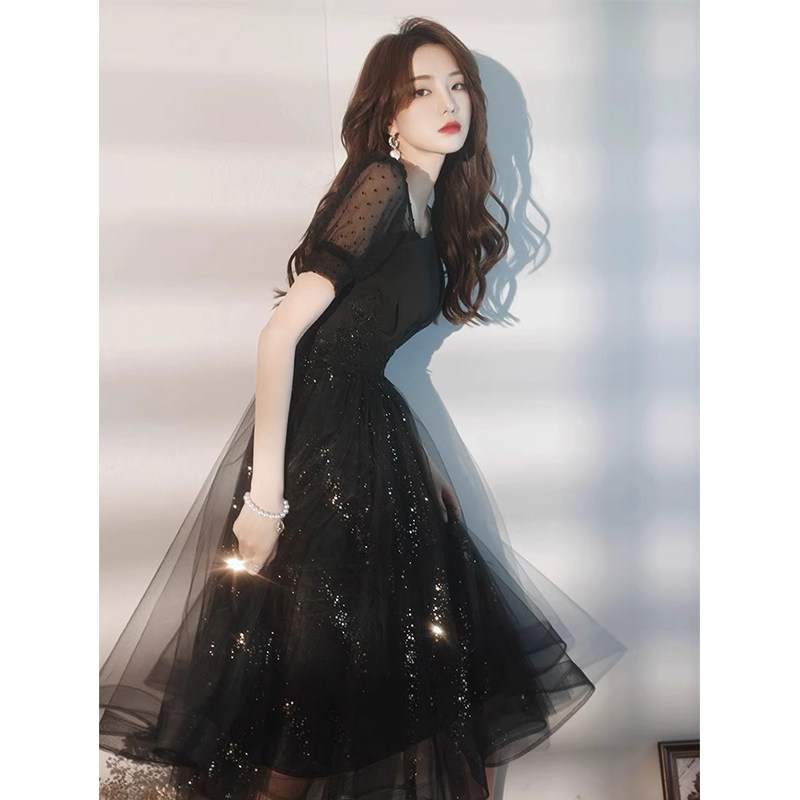 黑色晚礼服女2025新款法式高端名媛轻奢小众主持人宴会气质连衣裙