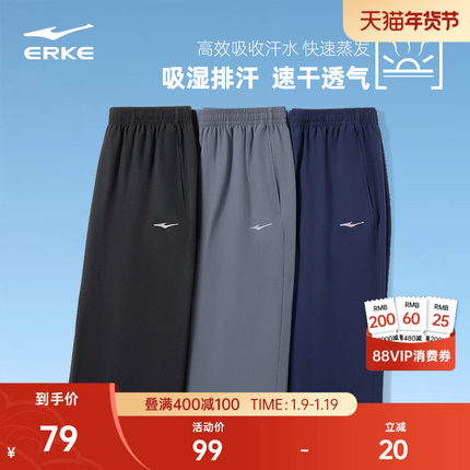 鸿星尔克运动七分裤男士夏季短裤透气裤子爸爸速干裤运动7分裤男