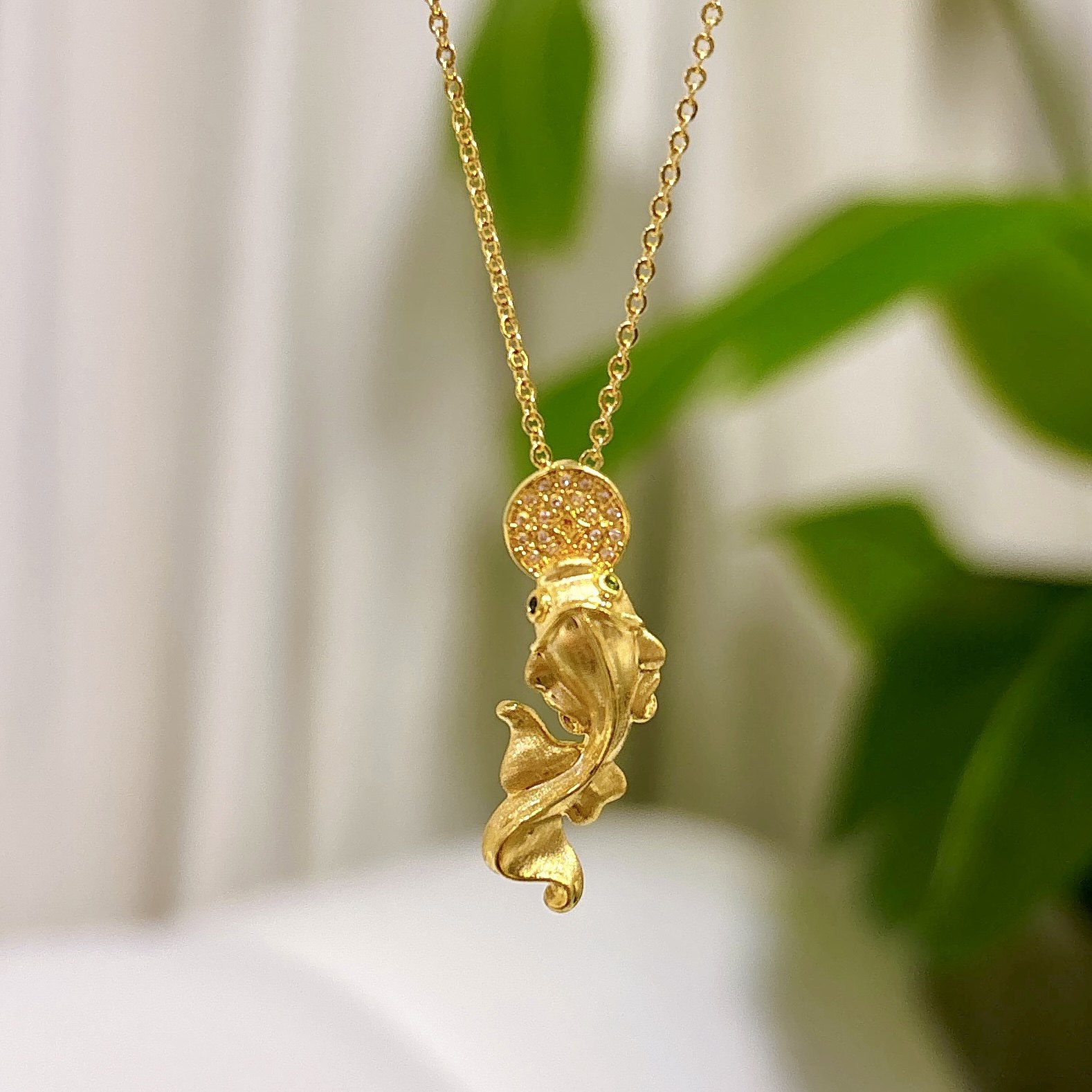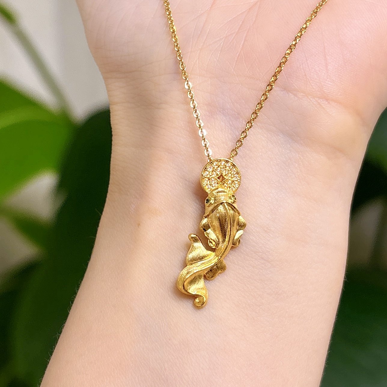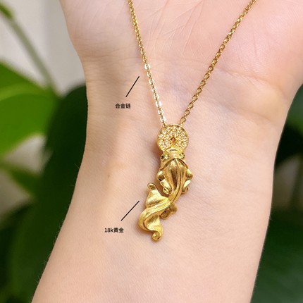 黄金饰品18K金 镶嵌工艺鲤鱼钱币配饰 (赠合金链)