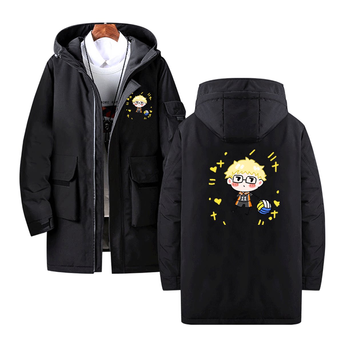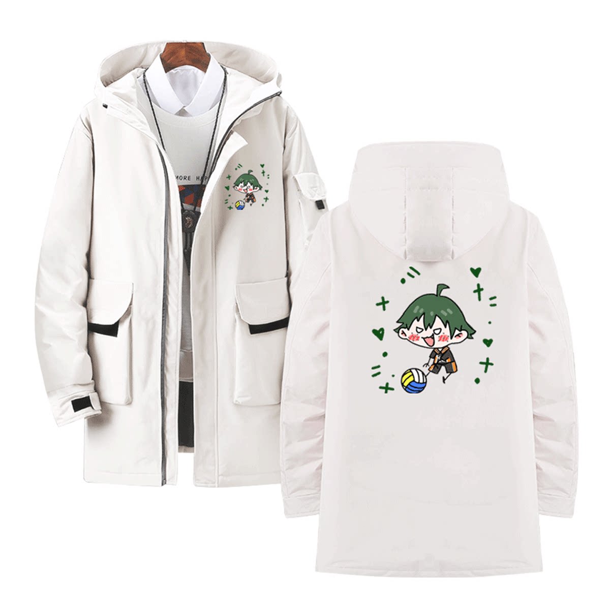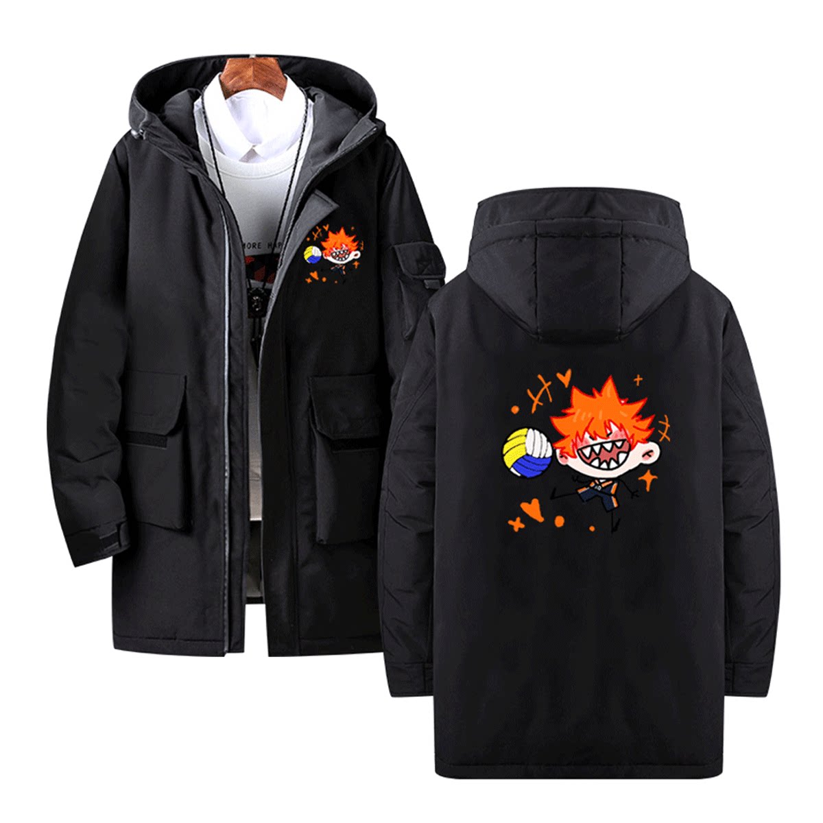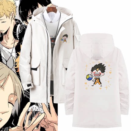 排球少年动漫周边休闲日向西谷夕木兔男可定制中长款带帽冬羽绒服