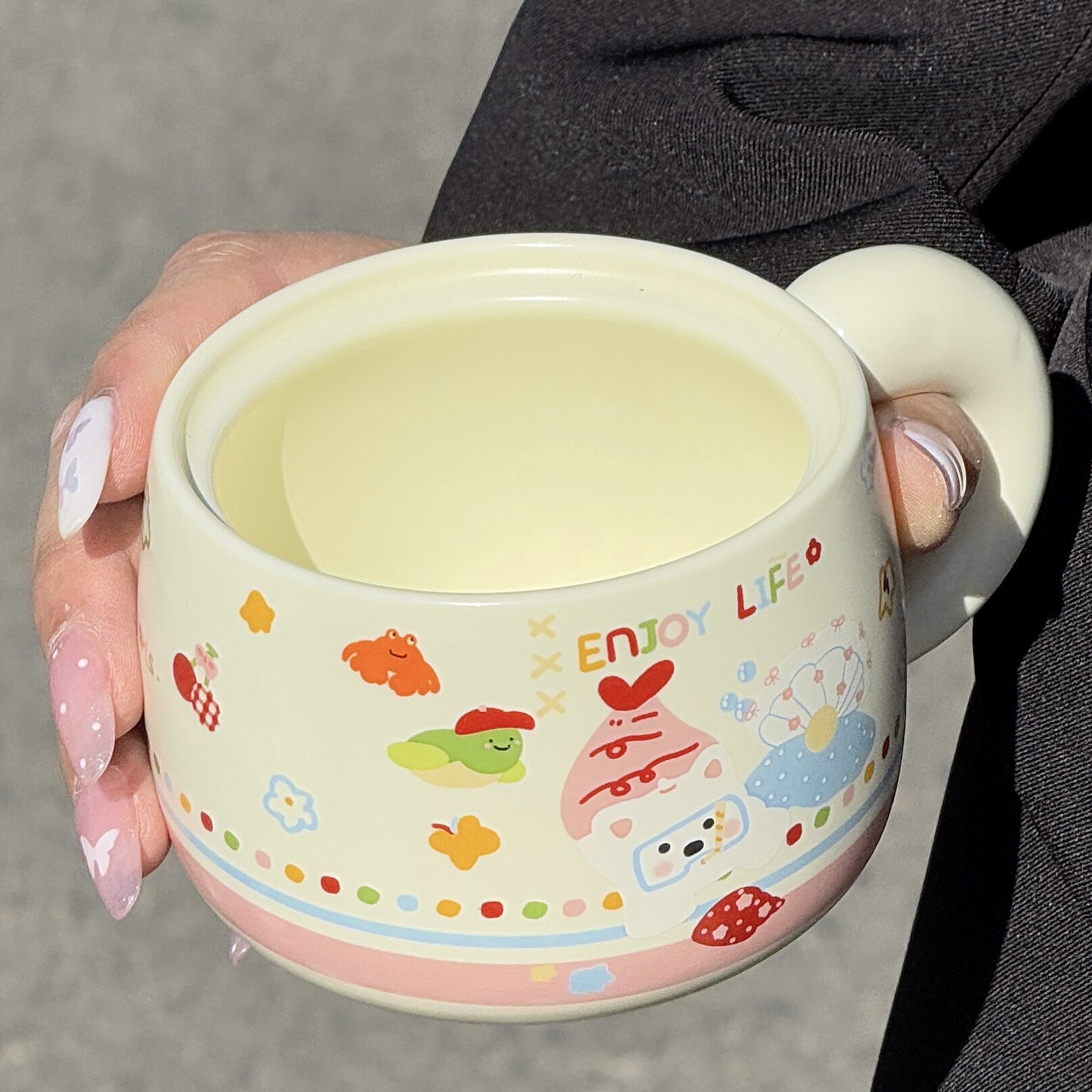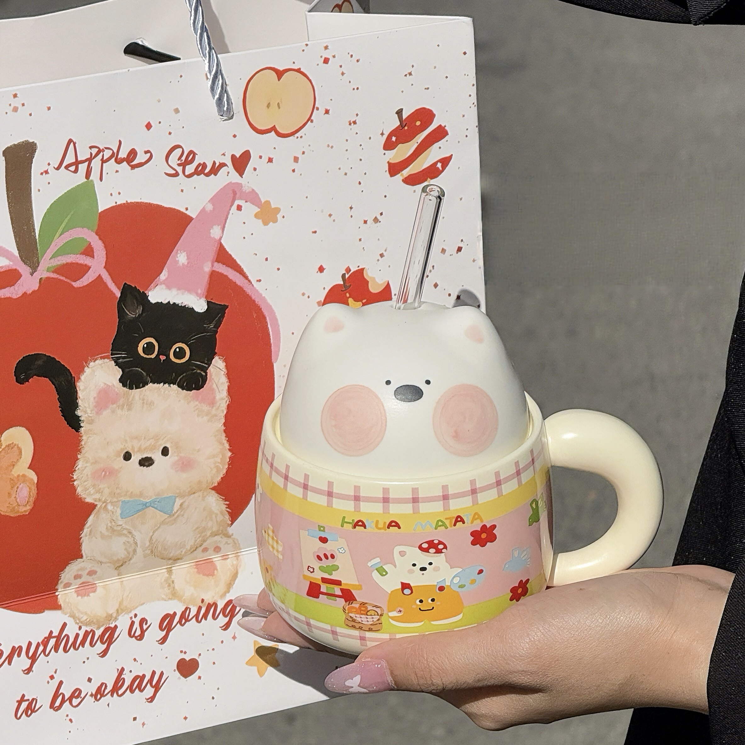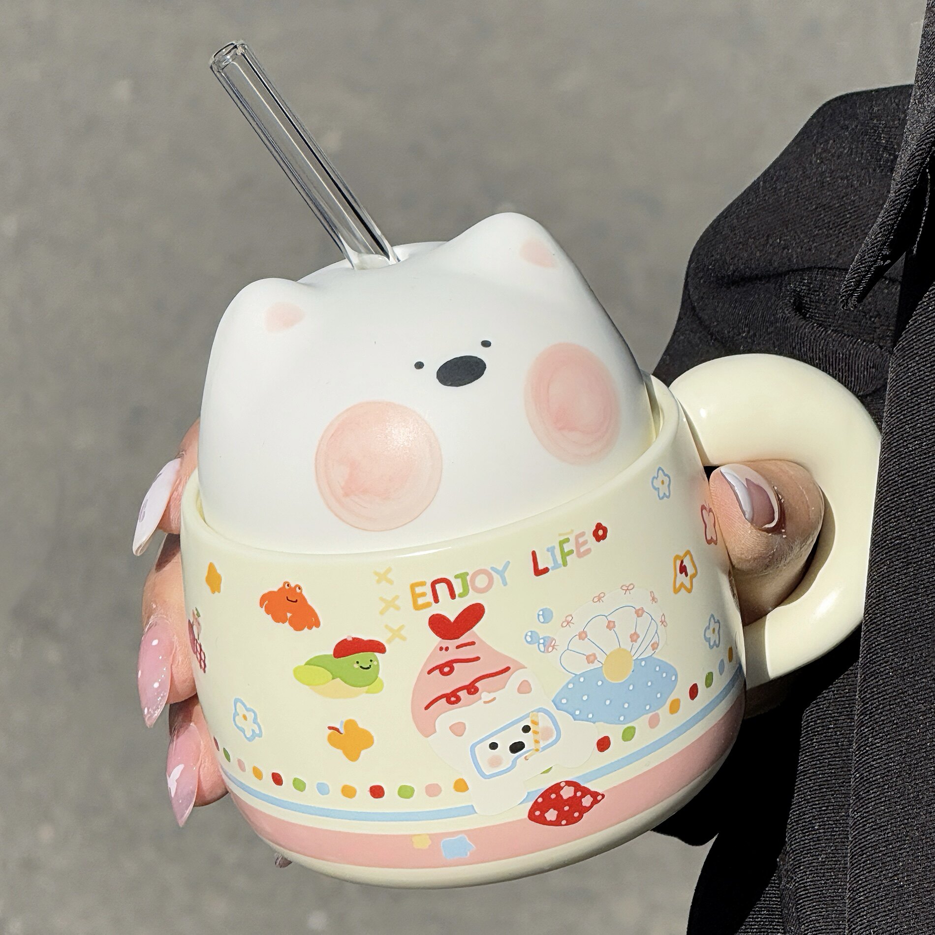 可爱卡通西高地陶瓷马克杯带盖吸管杯少女心茶杯办公室桌面咖啡杯