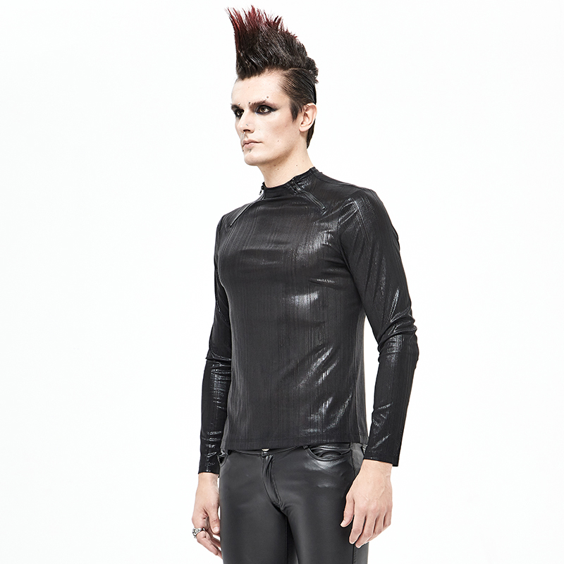 街头朋克摇滚风t恤长袖夜店酒吧圆领外穿性感男士上衣休闲表演服