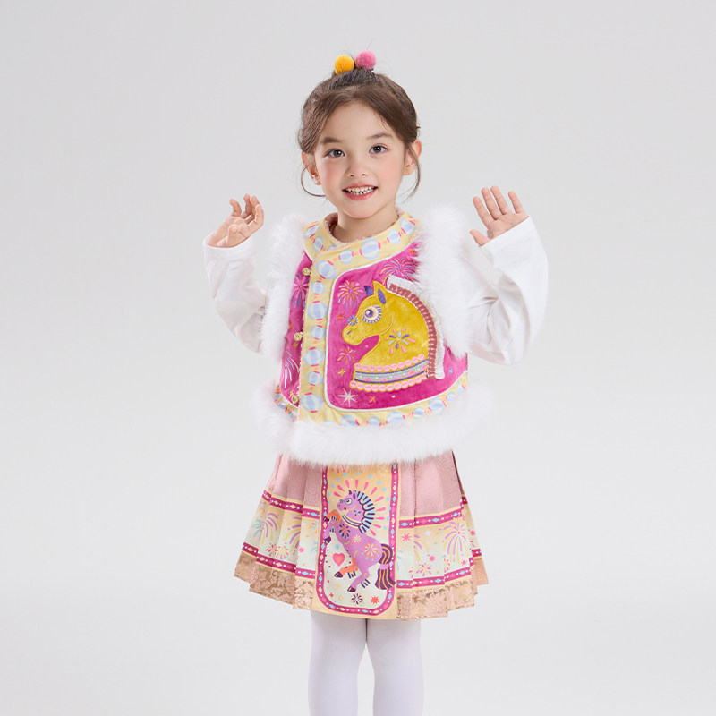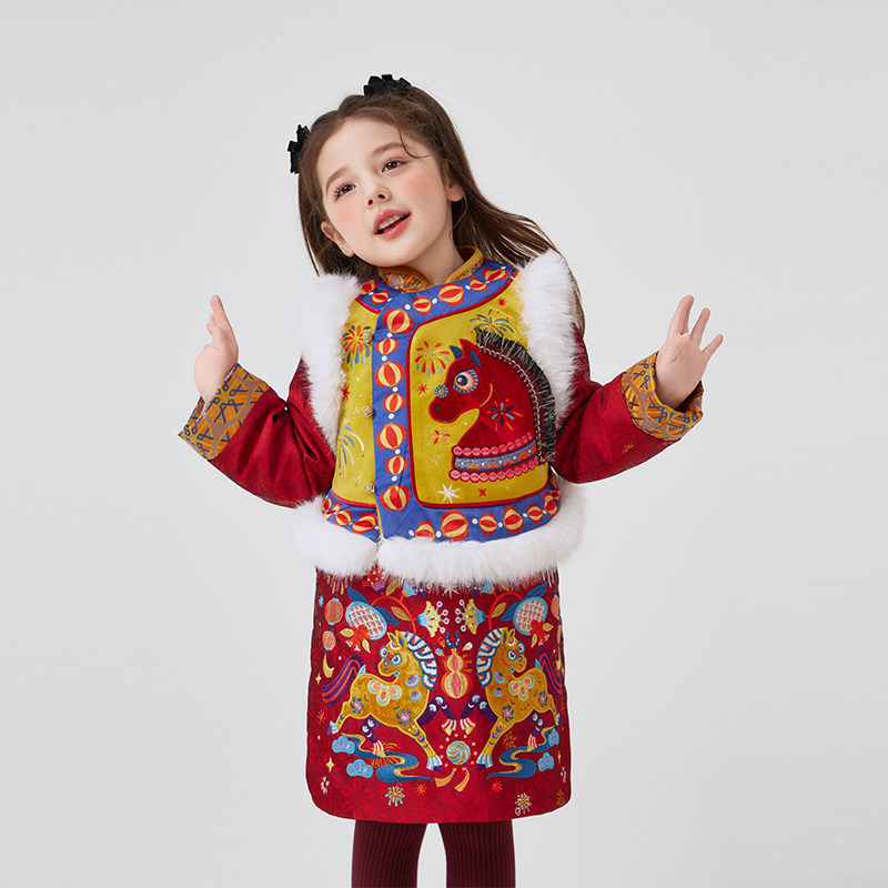 年衣童装中式马褂套装冬季新款女童拜年服棉服儿童新年唐装汉服厚