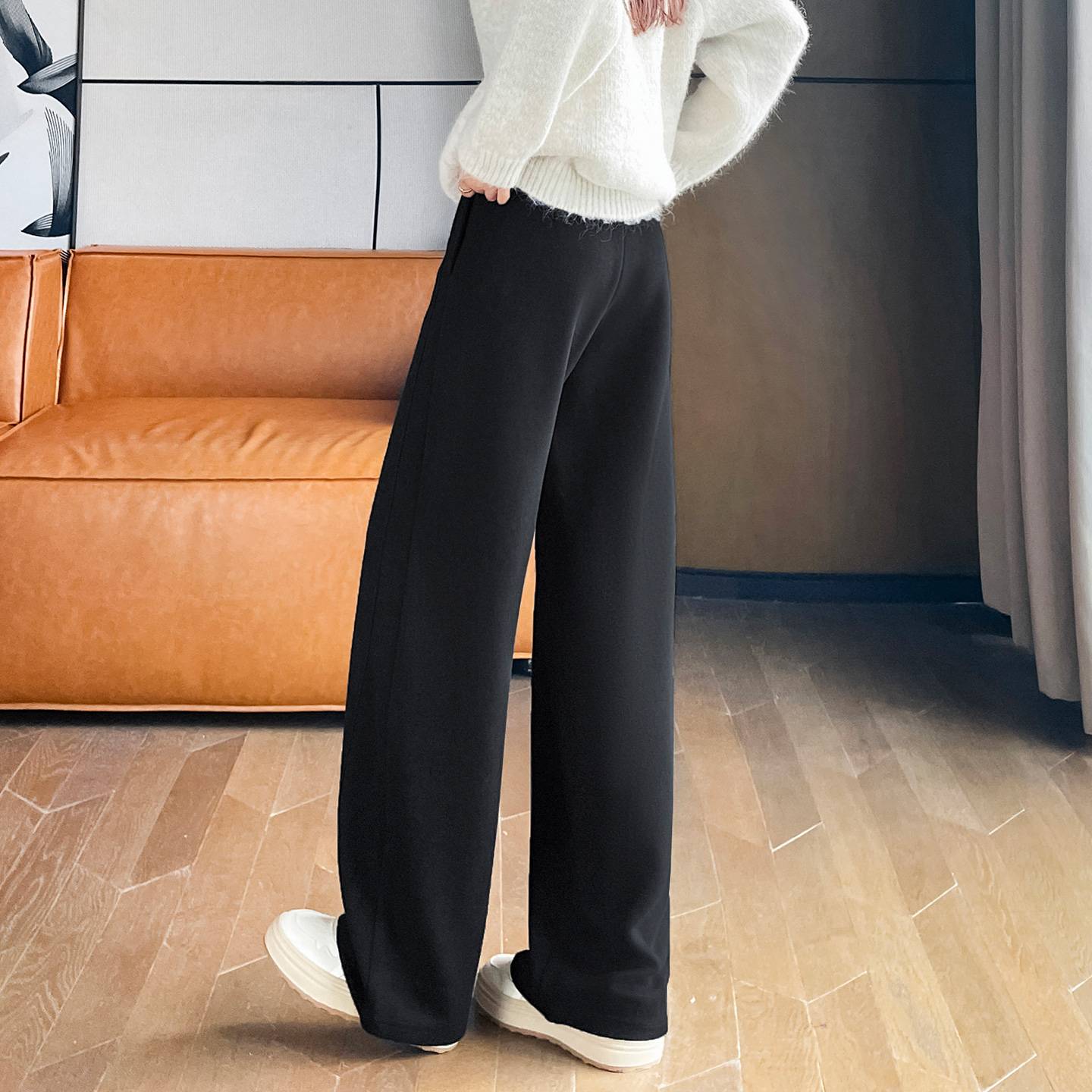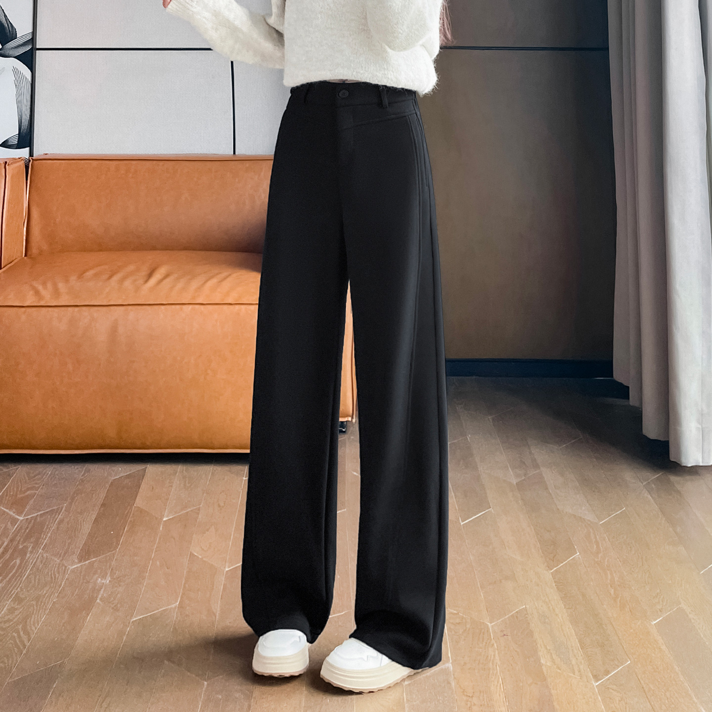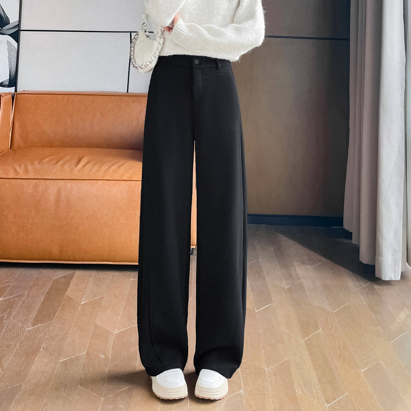 毛呢弯刀阔腿裤女秋冬直筒香蕉裤