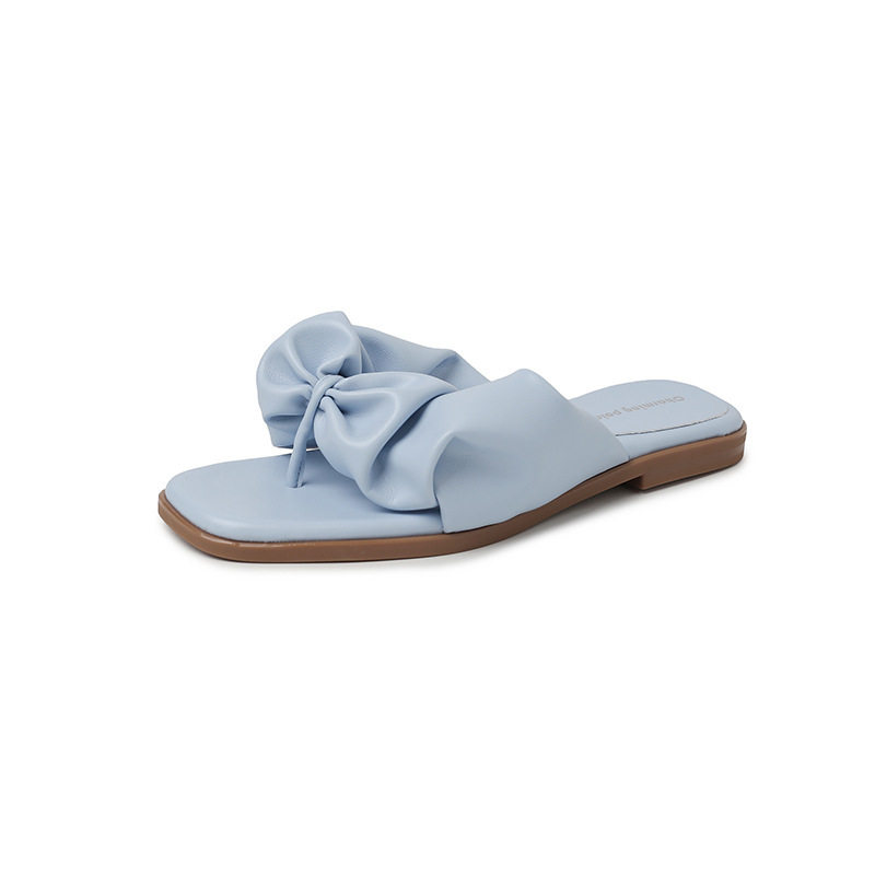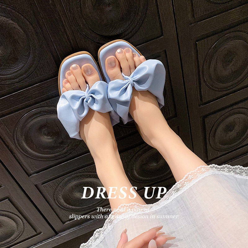 欧洲站女方头一字拖鞋蝴蝶结粗跟凉拖鞋时尚2025夏季新款气质凉鞋