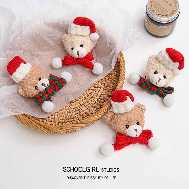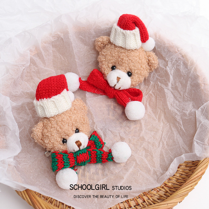 圣诞小熊毛绒胸针日系可爱扣针围巾装饰配件毛衣装饰配件圣诞礼物