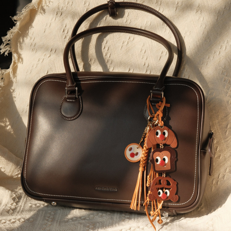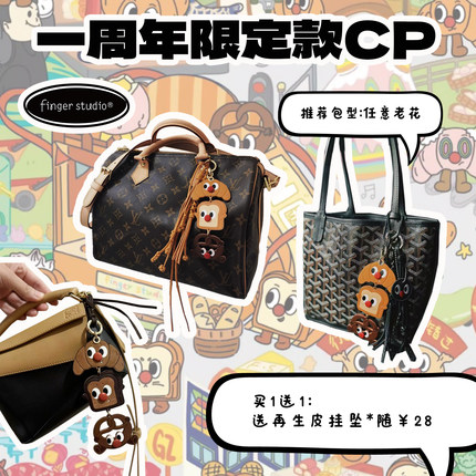 fingerstudio指作 小丑面包牛皮包挂件lv流苏高级质感真皮包挂饰
