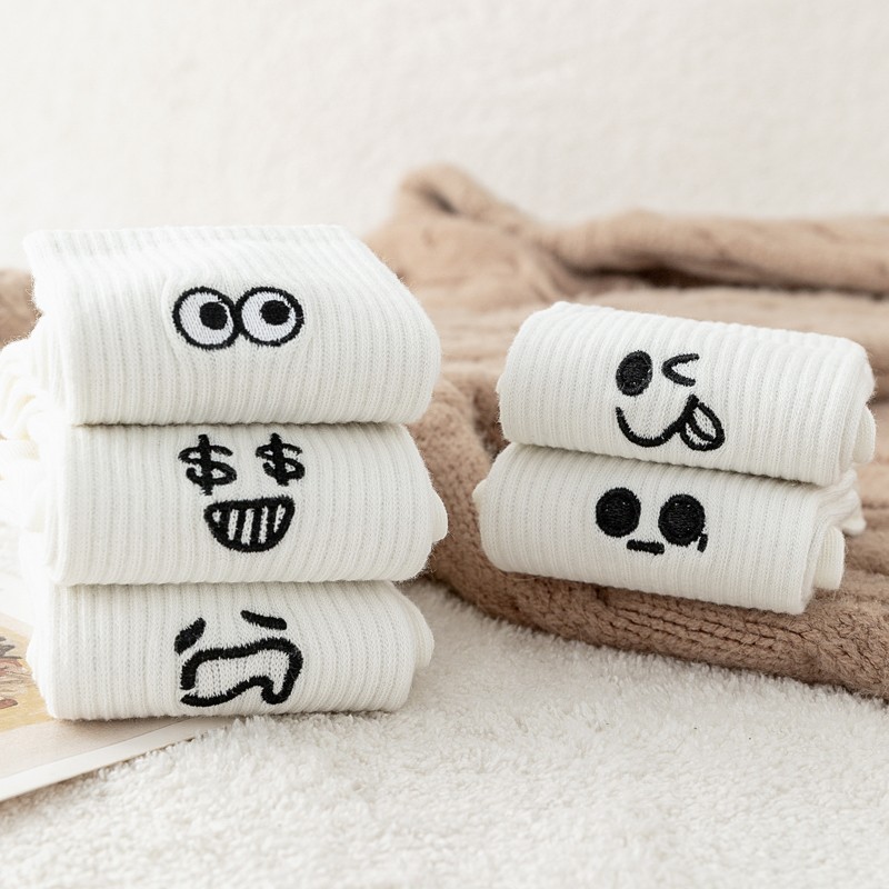 诸暨白色袜子女春秋刺绣夏季棉袜中筒网红超火学生情侣街头运动袜