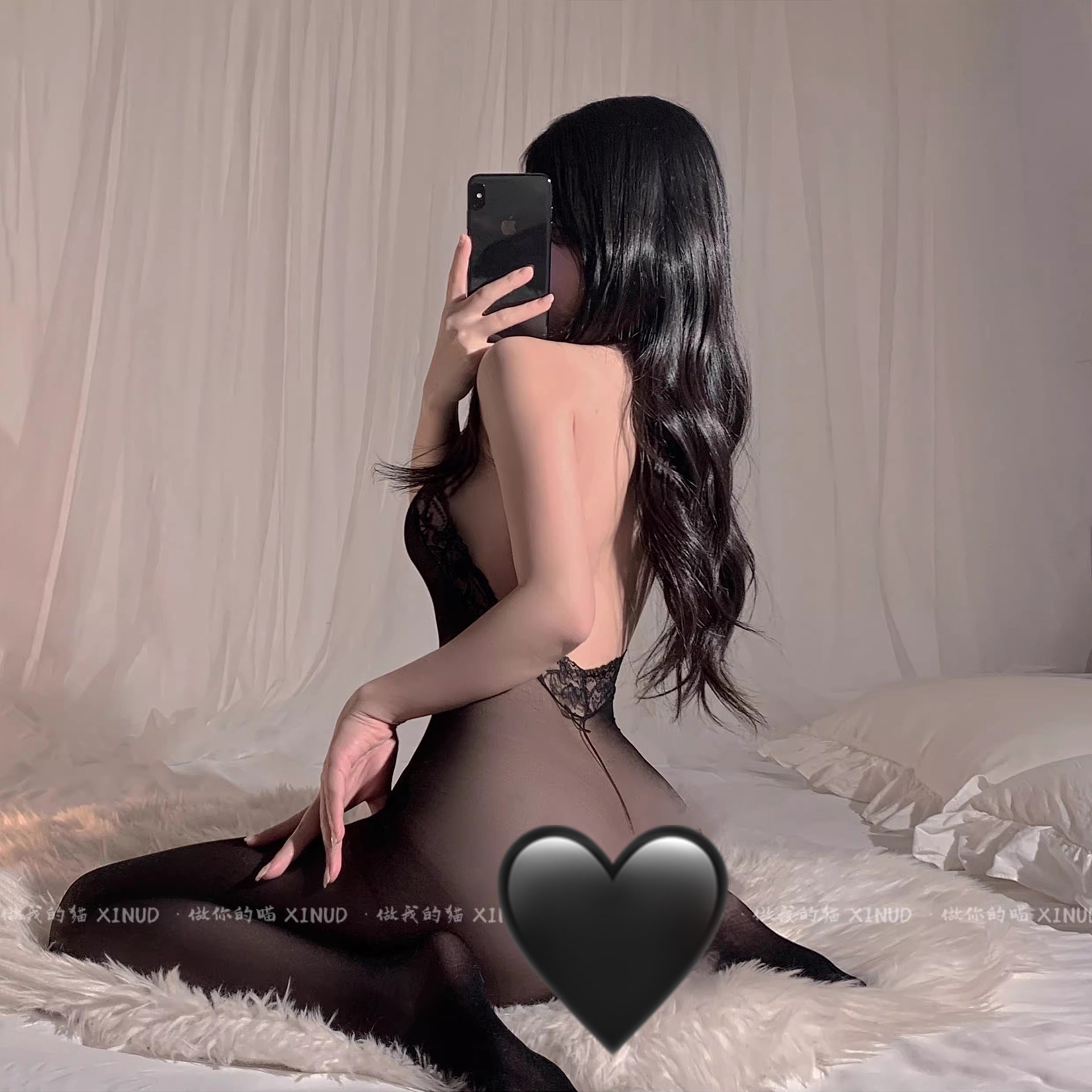 做你的猫:你的腿精!性感显瘦纯欲薄款破洞连体衣气质长筒黑丝袜