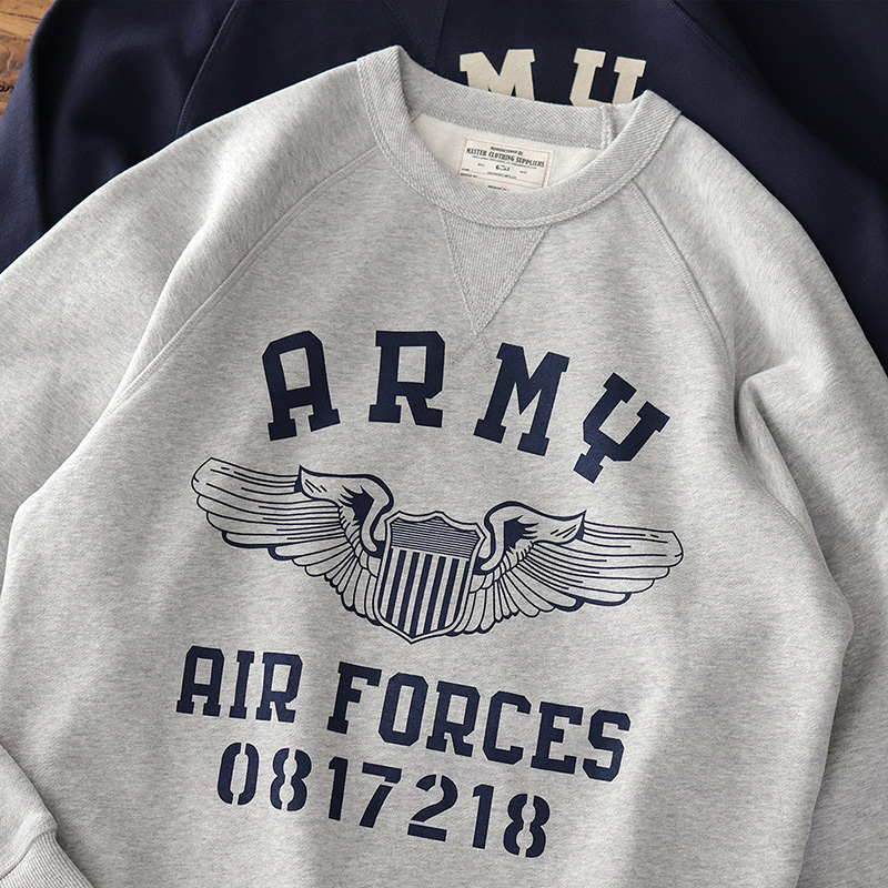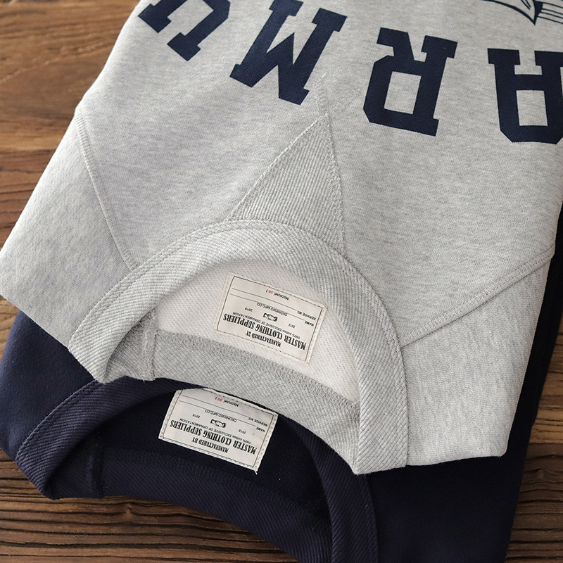 490G重磅卫衣男纯棉加厚秋冬款阿美咔叽美式复古印花插肩圆领外套