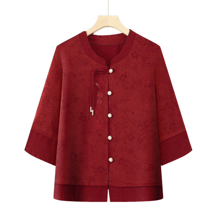 日式良品中老年女装中式夏装衬衫洋气奶奶妈妈新款国风夏季短袖小
