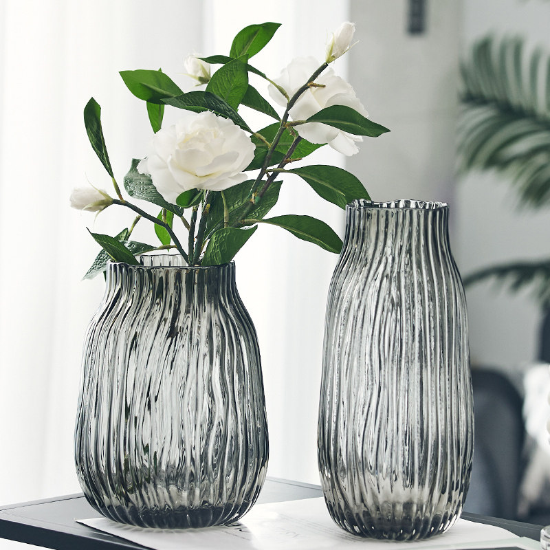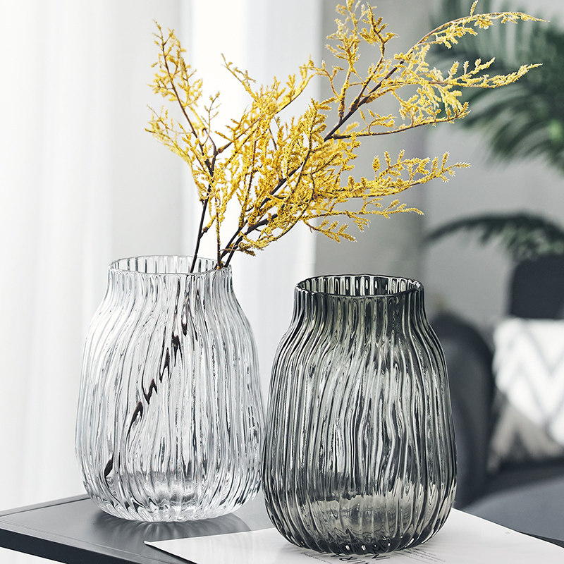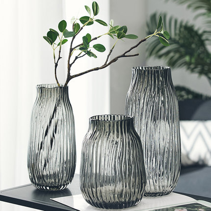 大号北欧创意简约水波纹玻璃花瓶水培植物鲜客厅餐桌插花瓶摆件