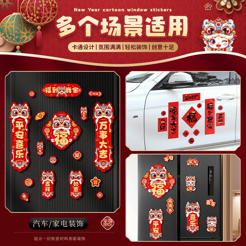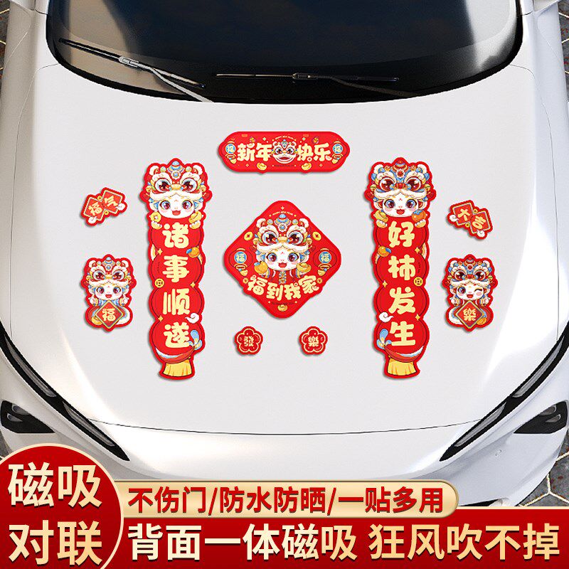 2025过年汽车装饰冰箱贴喜庆磁吸小对联新年蛇年春节贴纸个性创意