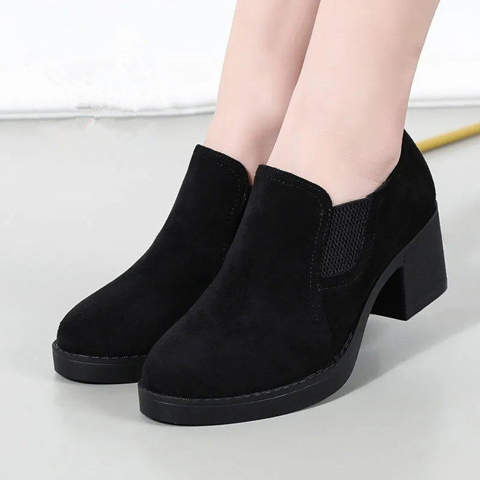粗跟单鞋女2024新款洋气休闲高跟鞋舒适超软中跟百搭工作鞋四季鞋
