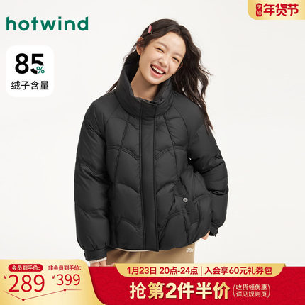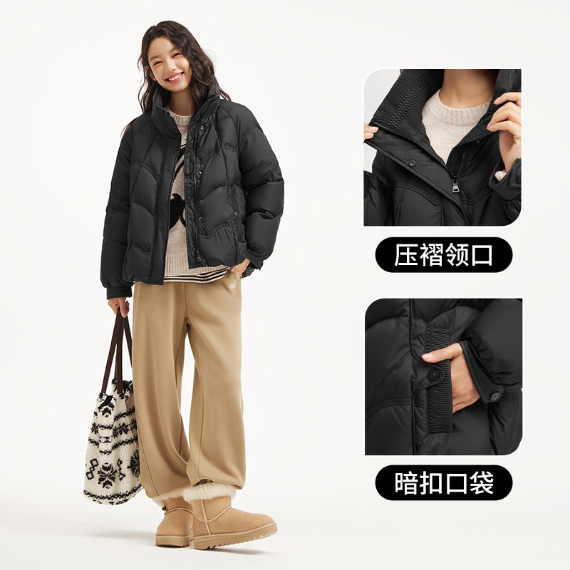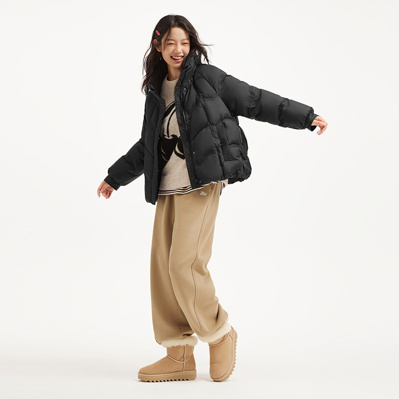 热风2025年冬季新款女士时尚立领短款羽绒服