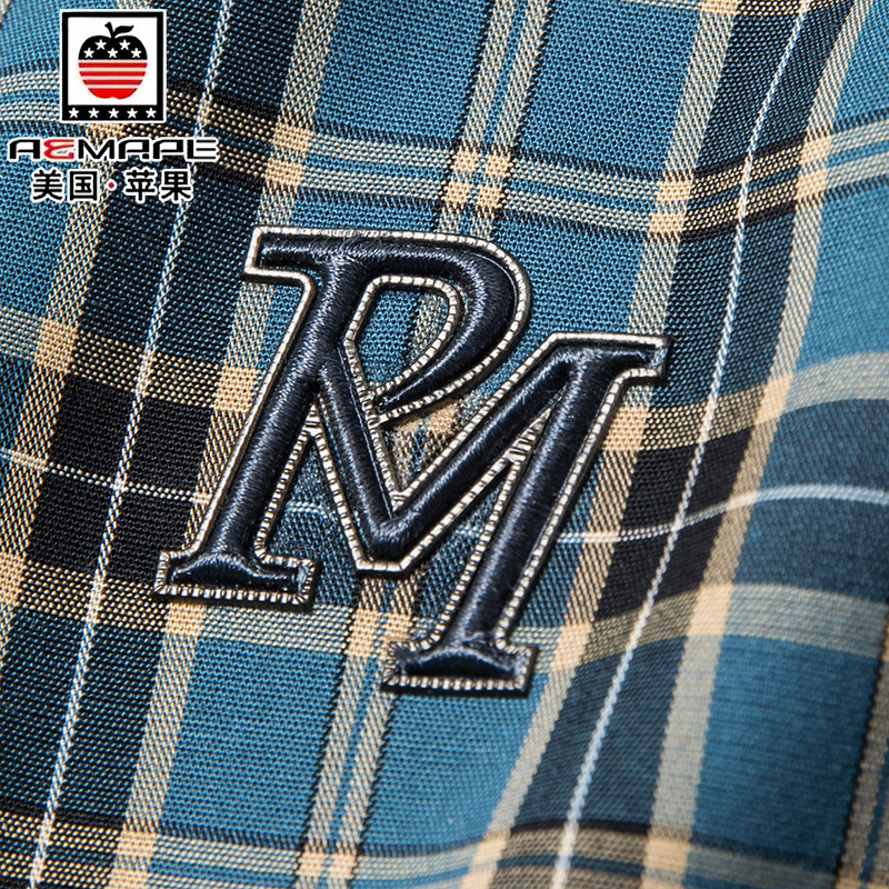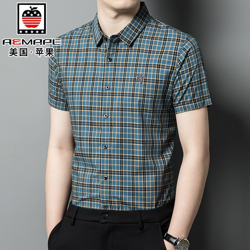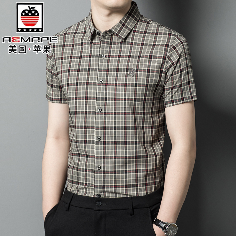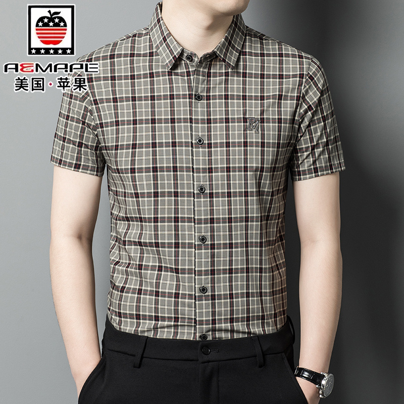 美国苹果男士格子短袖衬衫