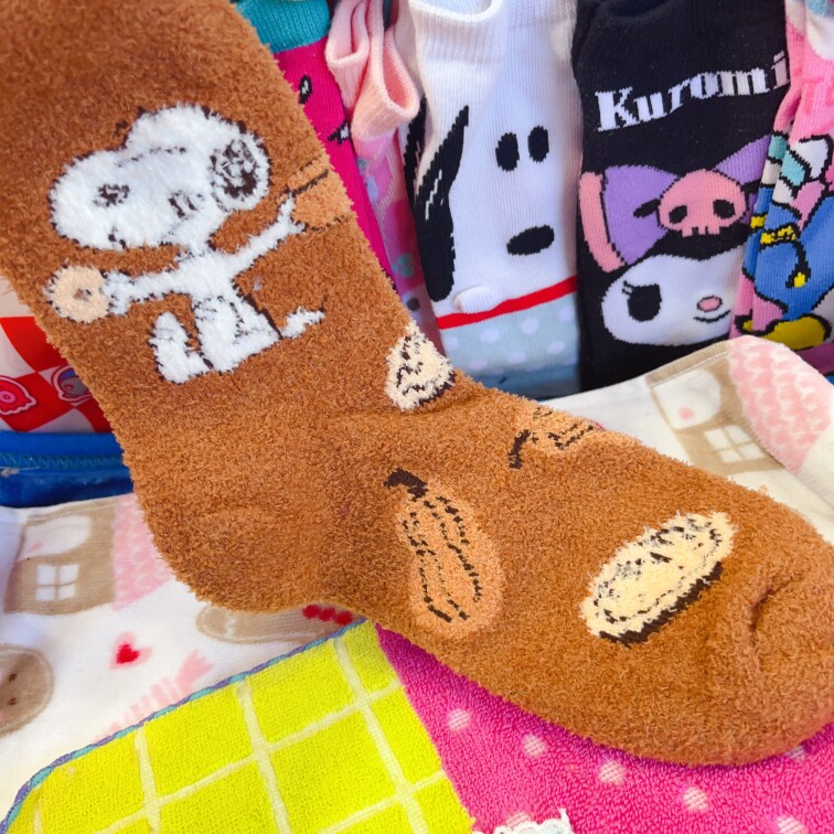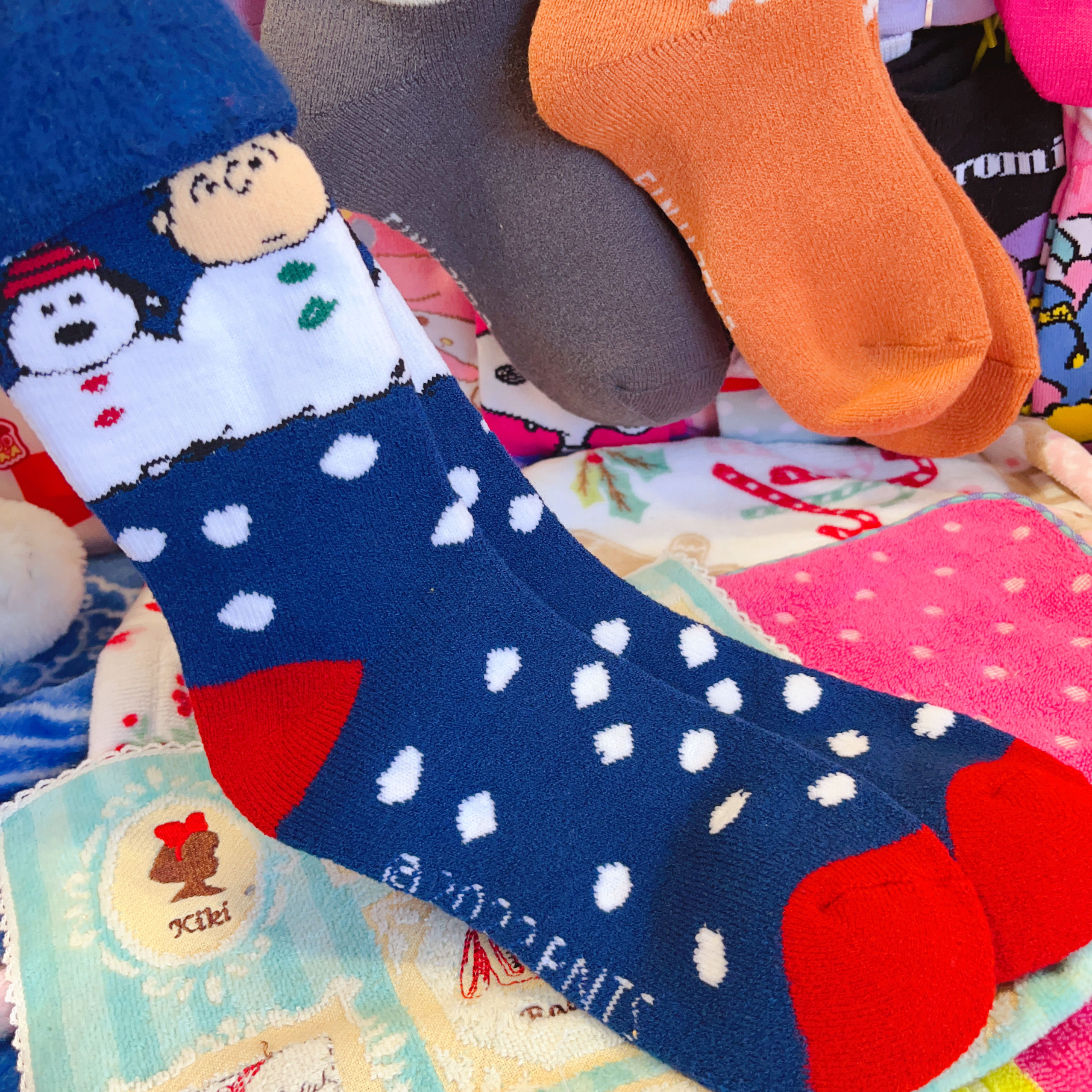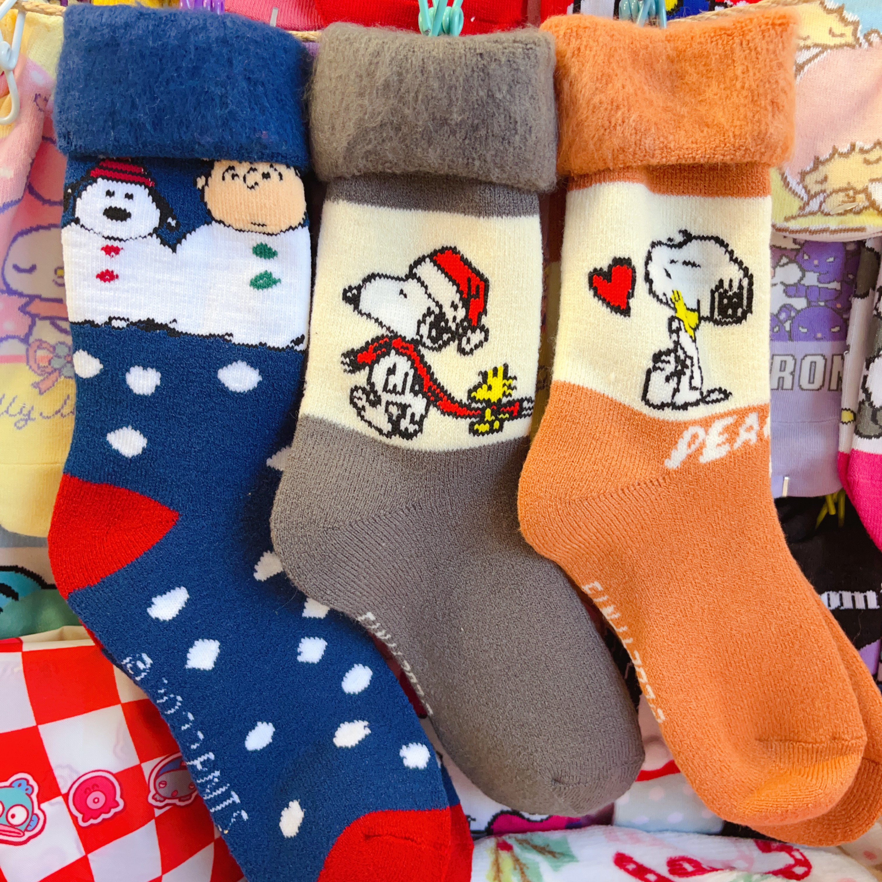 出口日本新品可爱史努比snoopy中筒袜女袜毛绒袜秋冬加厚珊瑚绒