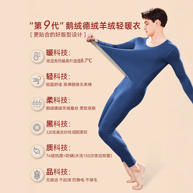 保暖内衣男士羊绒蚕丝加厚加绒无痕秋衣秋裤套装发热打底衫秋冬季