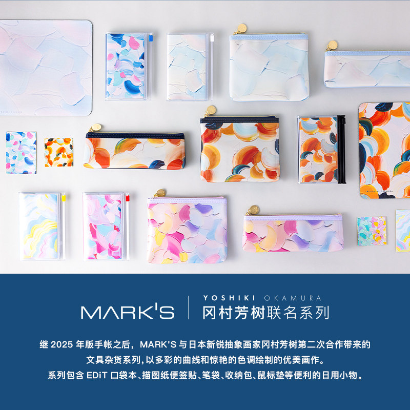 MARK'S冈村芳树艺术家联名款抽象画主题印花PVC材质拉链文具整理收纳包笔袋时尚创意学生文艺青年设计师
