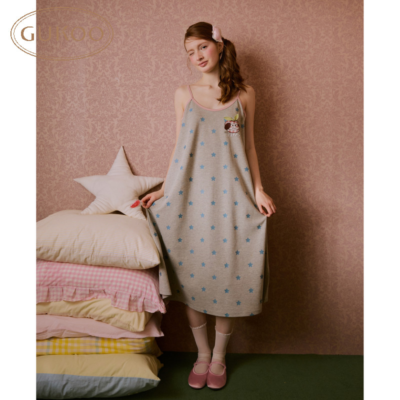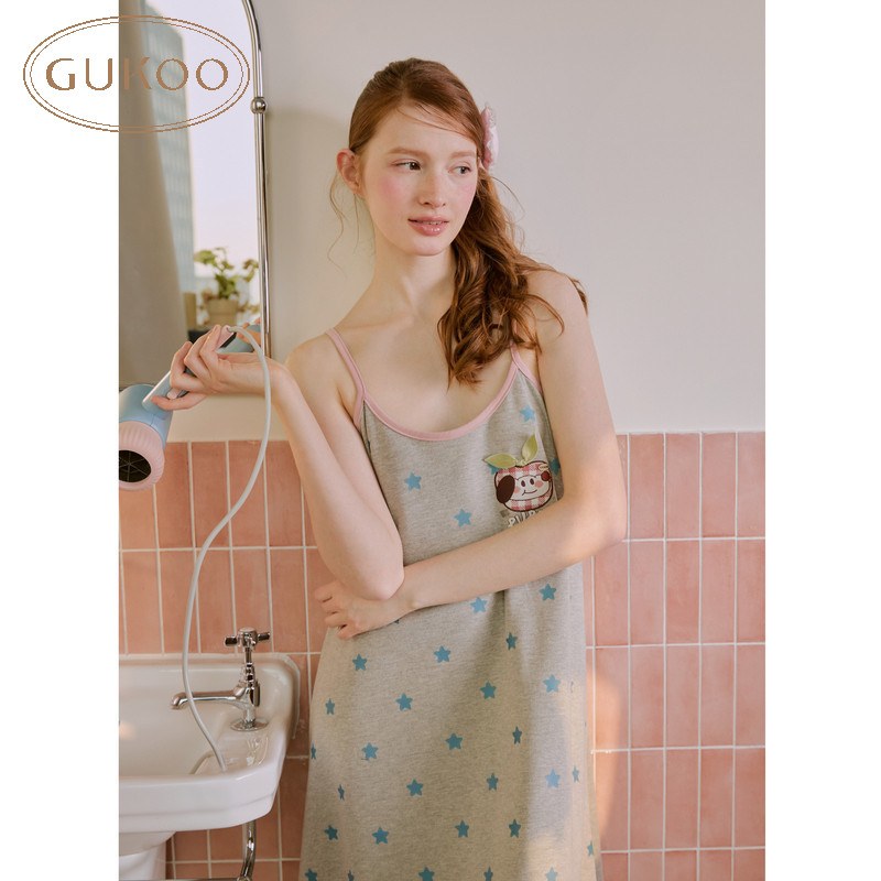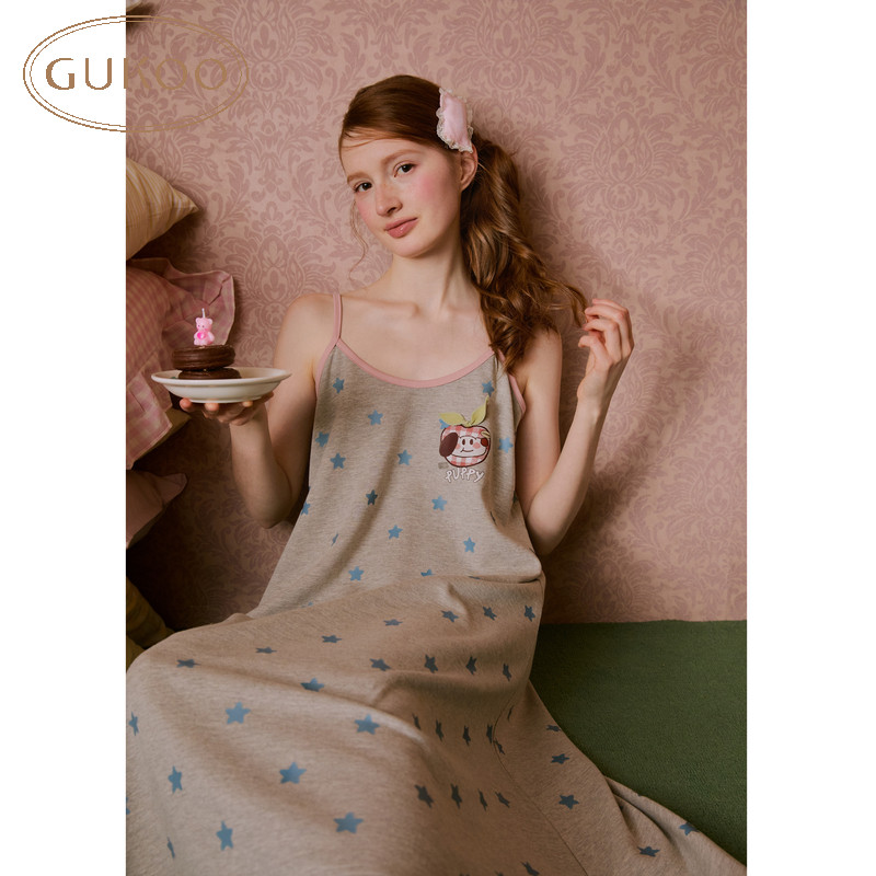 Gukoo/果壳无袖夏季轰轰小狗可爱女士家居睡裙吊带宽松显瘦可外穿