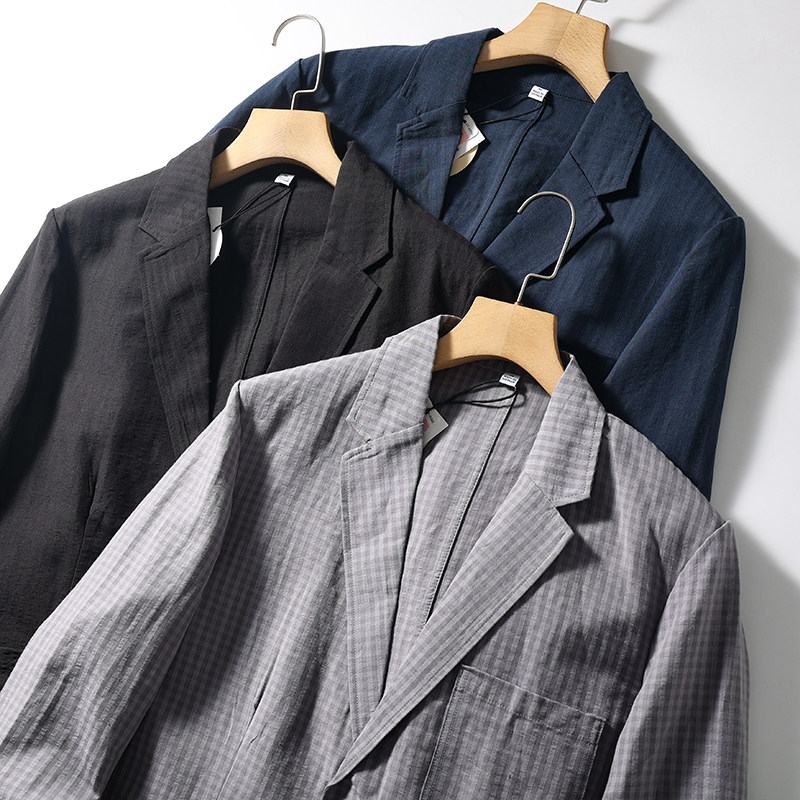 岛国单!亚麻混纺!吸湿透气!春夏薄款男士泡泡纱轻商务休闲西服