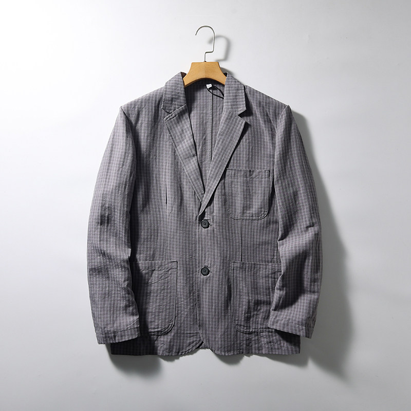 亚麻混纺吸湿透气泡泡纱商务西服