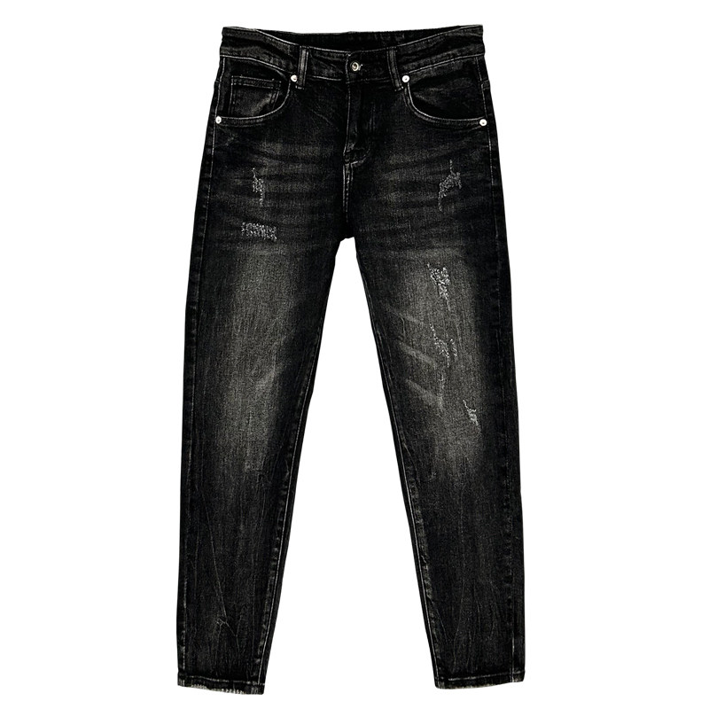 春季九分牛仔裤男修身小脚潮流舒适新款黑色水洗弹力韩版牛仔裤男