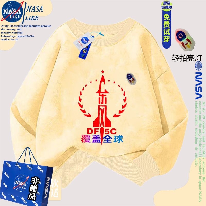 NASA东方C5导弹儿童扎染卫衣秋冬季加绒加厚男女童宽松圆领上衣潮