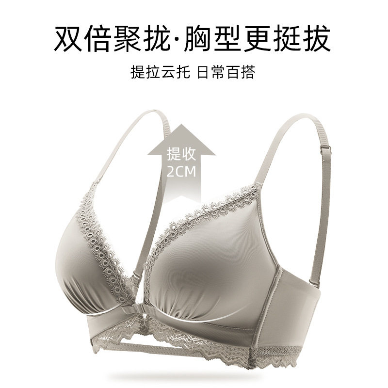 小胸聚拢显大前扣无钢圈文胸套装