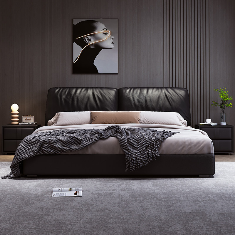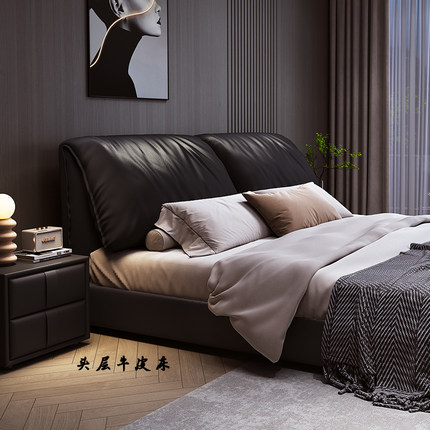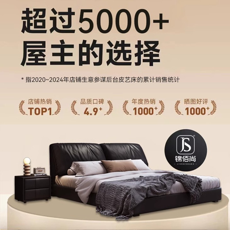 金可儿意式大象耳朵真皮床现代简约2米x2米2主卧高端大气1米8双人