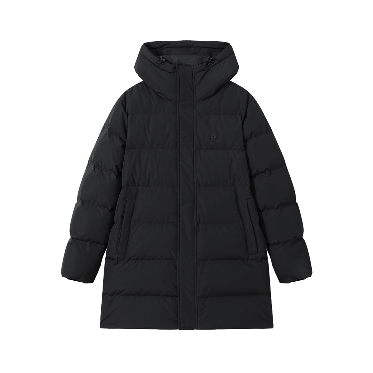 拓路者冬季90鸭绒羽绒服男中长款连帽加厚黑色面包服羽绒外套