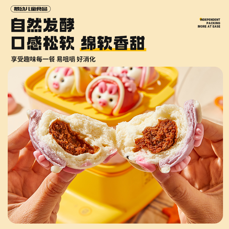 小猪盖被儿童早餐豆沙包子卡通果蔬馒头铁锅炖主食半成品加热即食