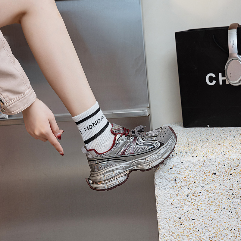 捡漏工厂真皮厚底增高小个子老爹鞋女2024秋冬加绒休闲百搭运动鞋