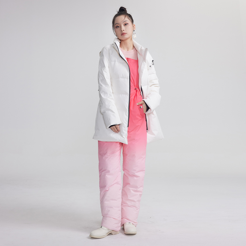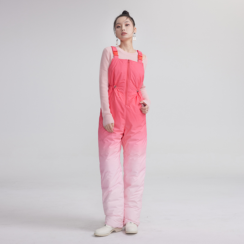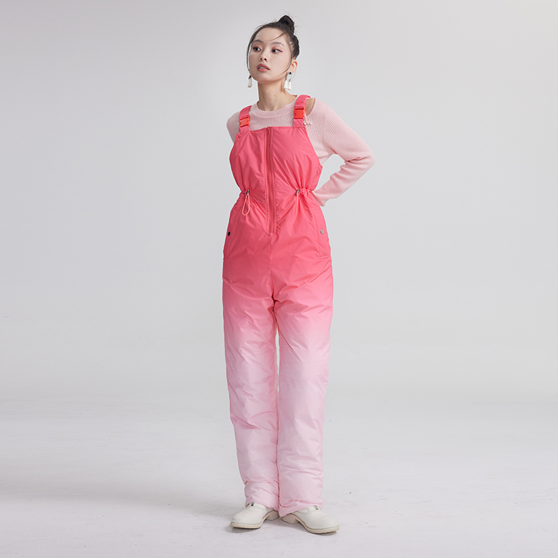 高腰背带羽绒裤女外穿原创设计2025秋冬防水保暖渐变时尚滑雪长裤