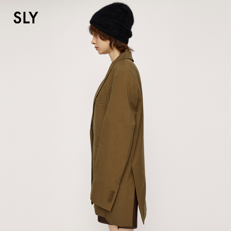 SLY 休闲通勤风中性慵懒感开叉单排扣西装外套女030GAY30-0660