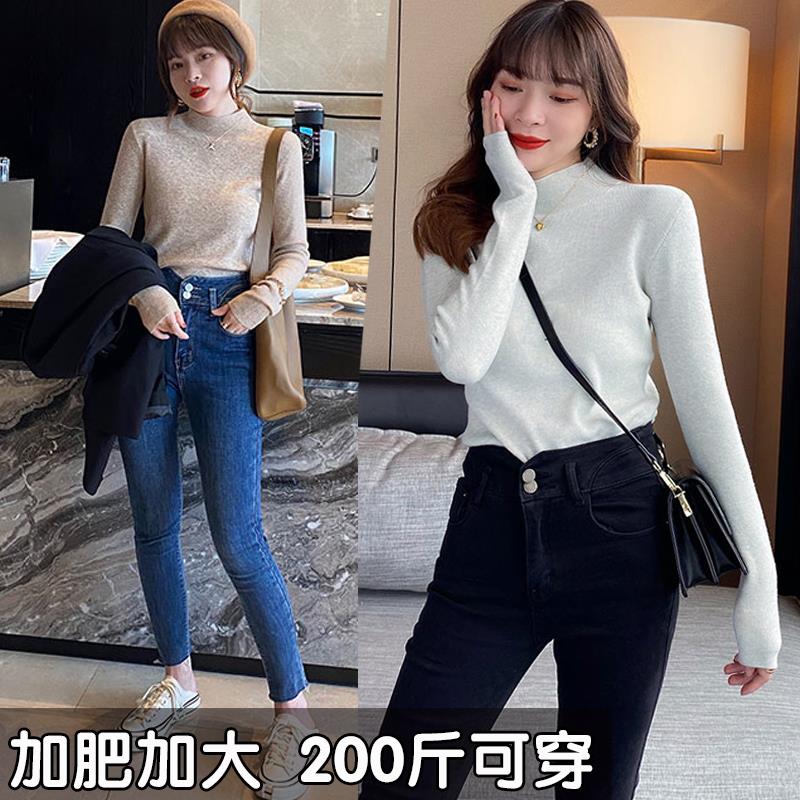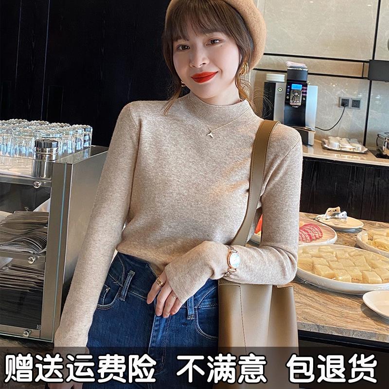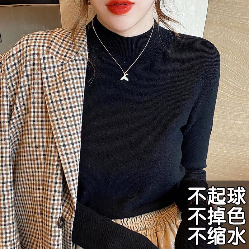 2025新款韩版秋冬针织衫半高领打底衫女西装内搭大码套头毛衣白色