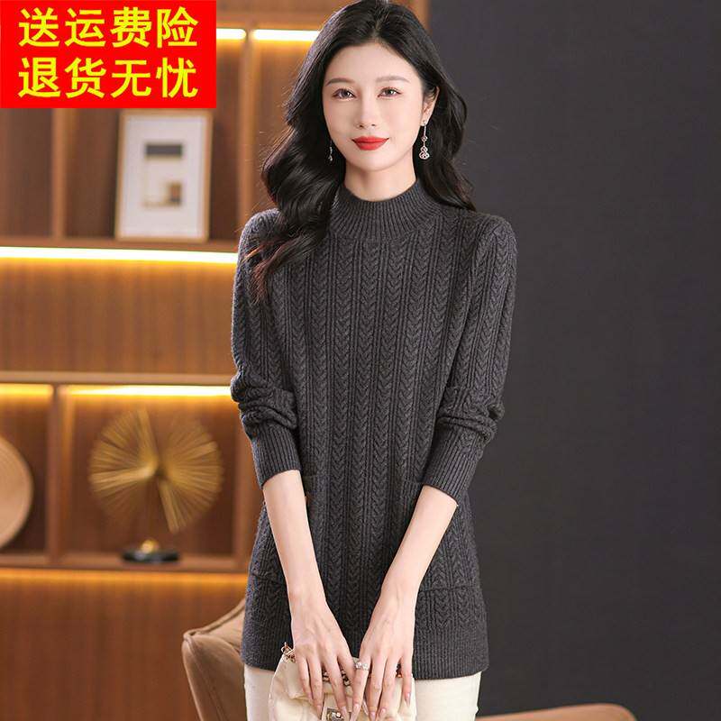 鄂尔多斯市秋冬新款羊毛衫半高领中长款时尚针织羊绒打底衫毛衣女
