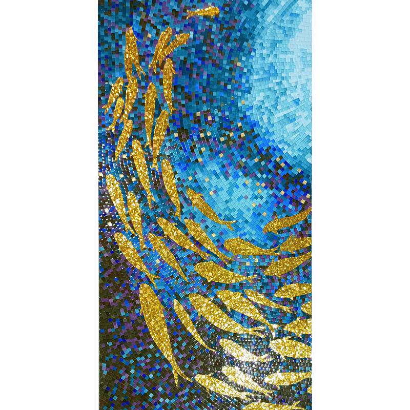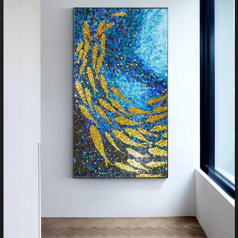 新中式鱼图案壁画马赛克瓷砖背景墙剪画拼图客厅玄关入户装饰挂画
