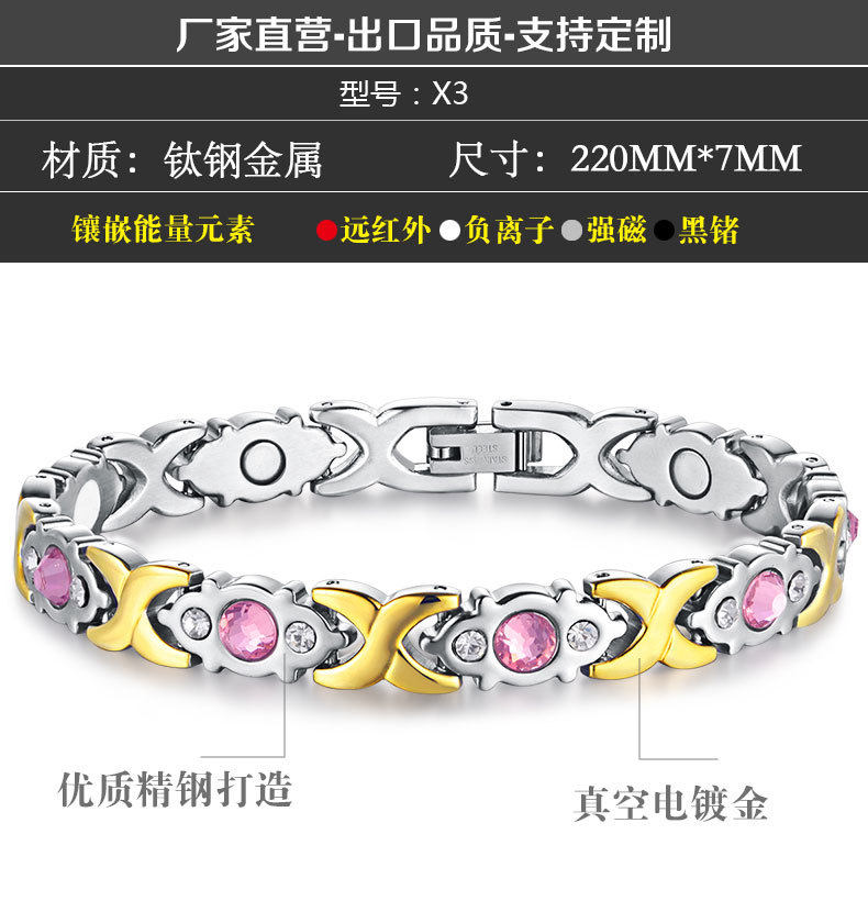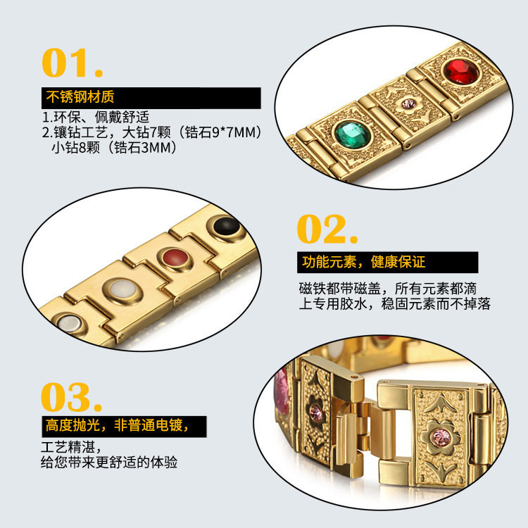 东莞腾达手链能量磁石手链男士复古钛钢饰品黄金色欧美潮男首饰品