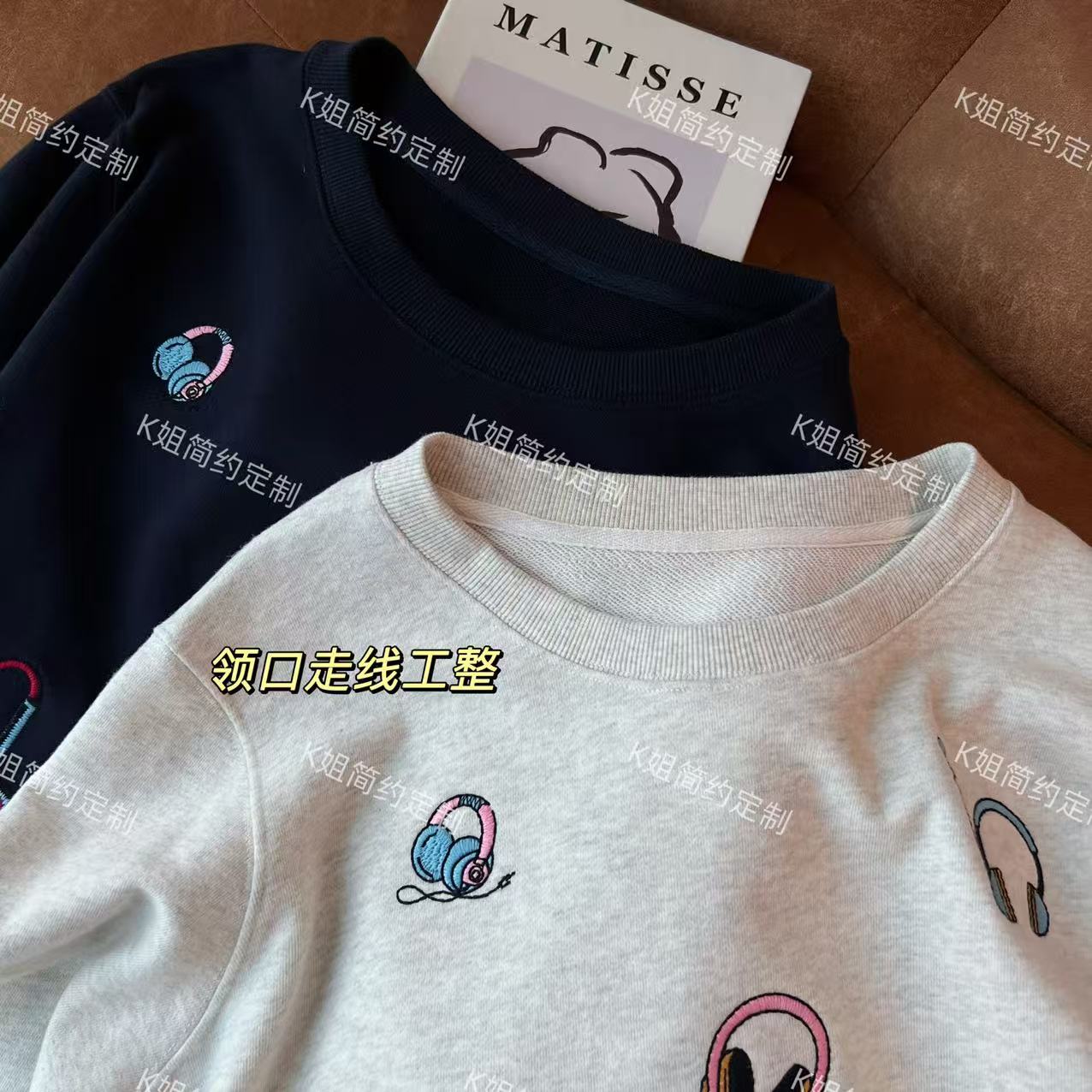 2025新款百搭圆领长袖刺绣卫衣女秋冬宽松显瘦休闲打底衫上衣